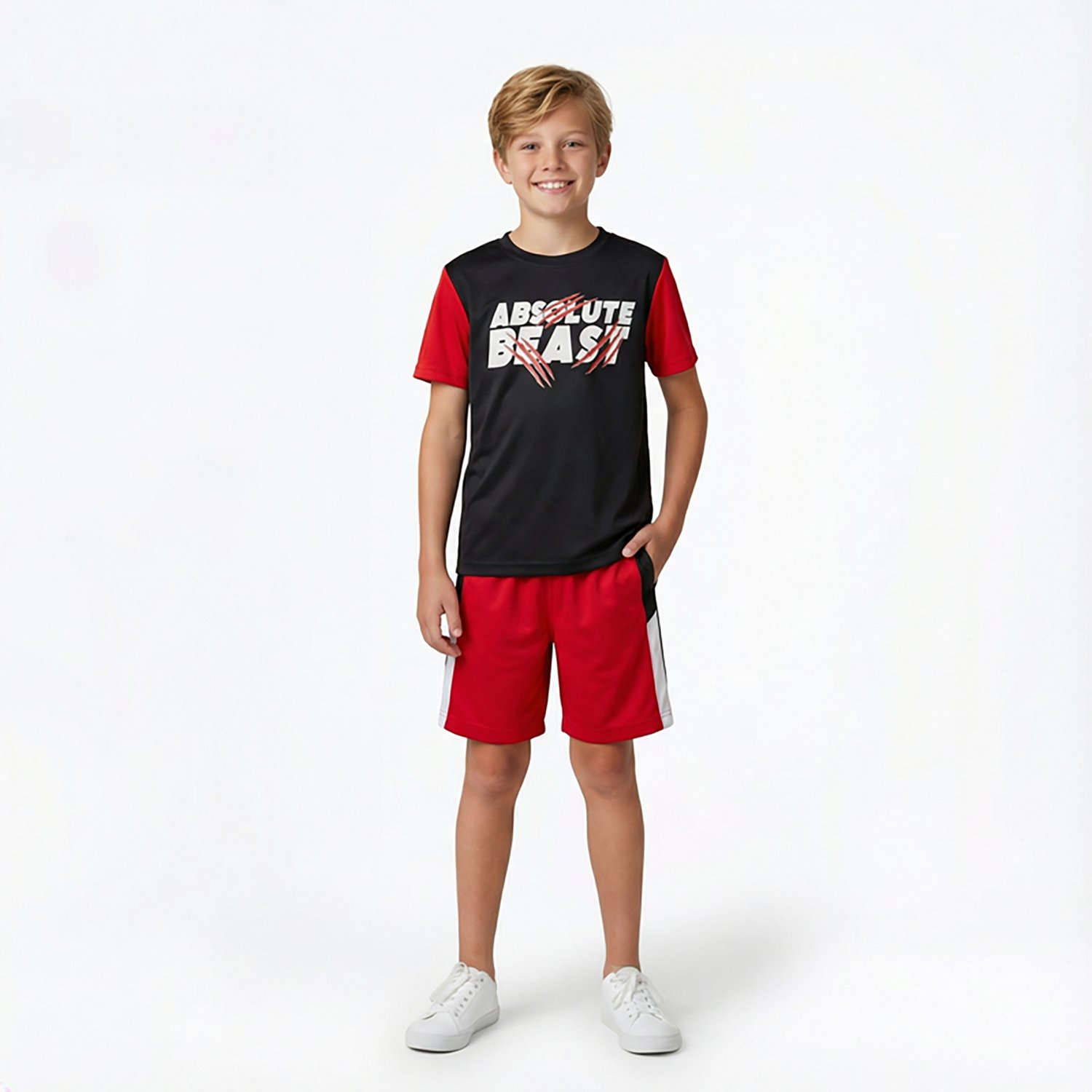 Style your little one from head to toe with this BCG Boys' (4-7) Absolute Beast Short Sleeve Set. The short sleeve top features a graphic artwork design to deliver bold style, and the shorts are designed with contrast side piercing for a sleek look.