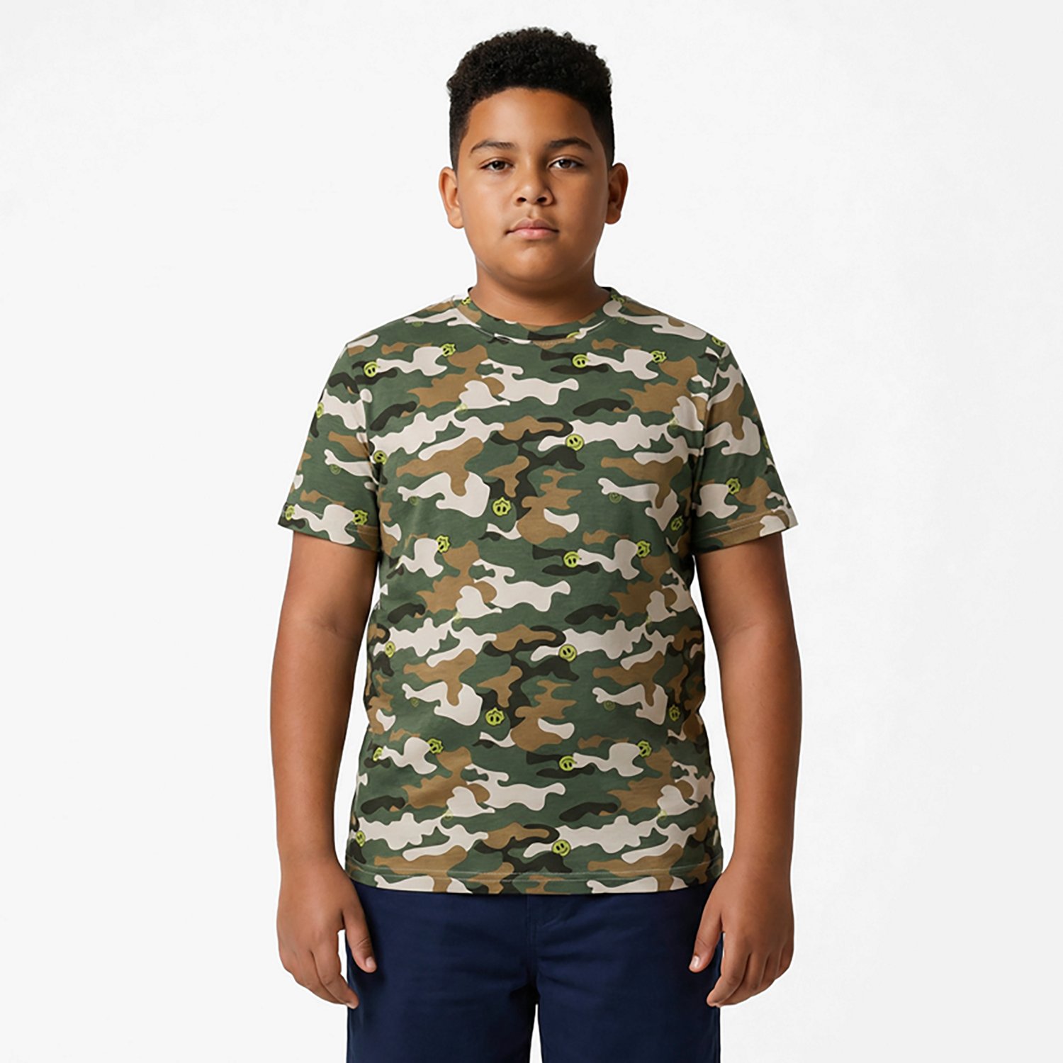 Show off your fun side with the BCG Boys' Lifestyle Camo Smiley Allover Print T-shirt. The cotton and polyester material provides a comfortable feel, while the allover print offers a stylish look.