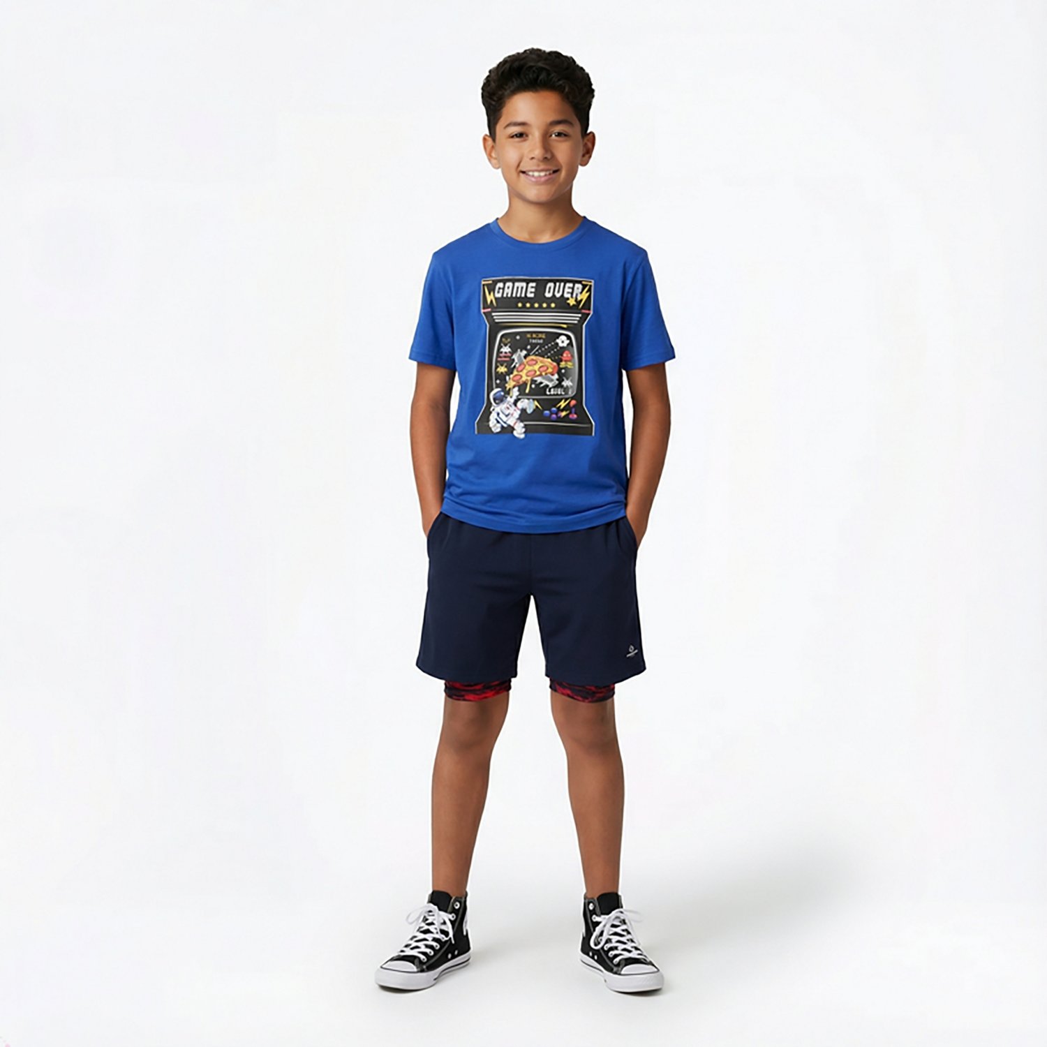 Own the day with the BCG Boys' #5 Cotton Graphic T-shirt. The cotton material provides a comfortable feel, while the graphic design delivers a stylish touch.