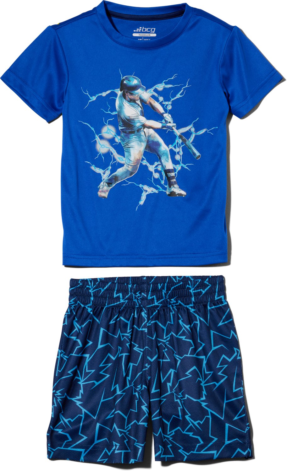 Play all day in the BCG Boys' Baseball Bolt Graphic T-shirt Set. The polyester material provides a comfortable feel, while the graphic design and allover print offer a stylish look.