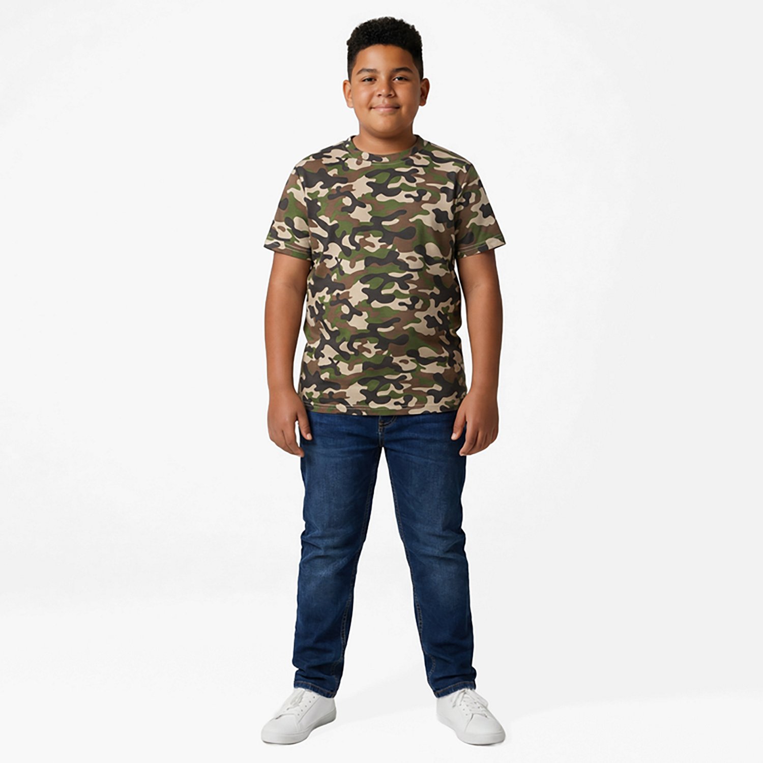Take on the day when wearing the BCG Boys' Cotton Camo T-shirt and showcase your style. This T-shirt is made of cotton and features a crew neck, short sleeves and a classic fit to help provide comfort and a casual feel, and the camo pattern helps bring a fashionable flair.