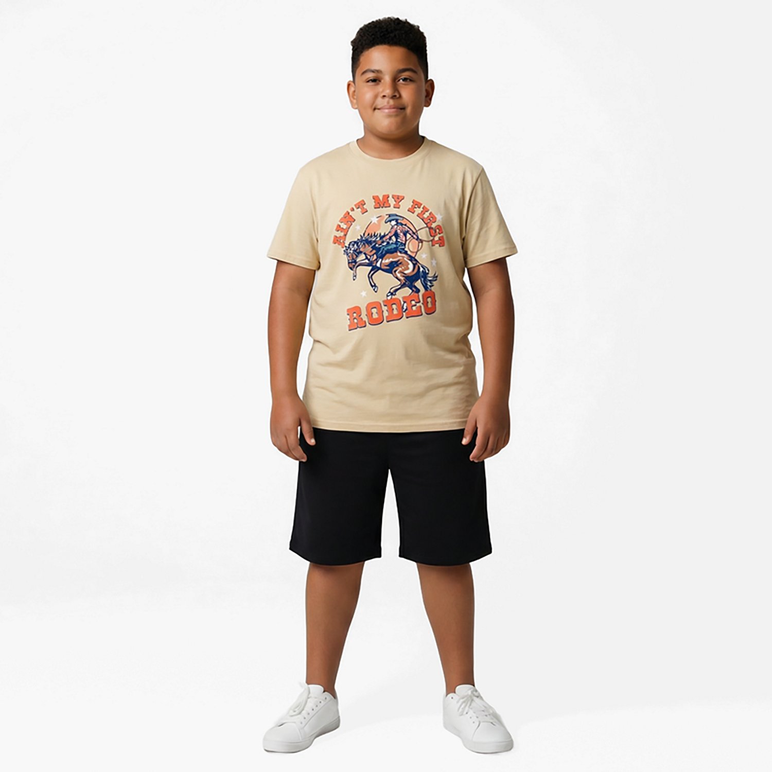 Add the BCG Boys' Cotton GFX T-shirt to your closet to have a stylish and soft option for everyday wear. This T-shirt is made of 60% cotton and 40% polyester with a crew neck, short sleeves and a classic fit for casual comfort, and the graphic design means you can show off your fashion sense.