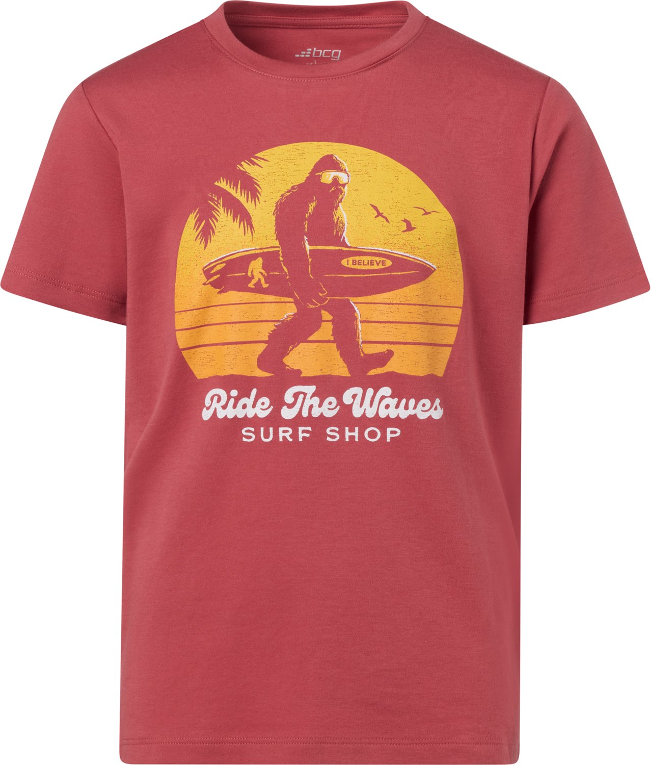 Have your little one looking their best when they wear the BCG Boys' Cotton Short Sleeve Graphic T-shirt. It is made of 60% cotton and 40% polyester. The short sleeves keep them cool, and its crew neckline creates a casual look. The screen printed "Ride the Waves Surf Shop" script and a sasquatch carrying a surf board graphic add a fun touch.