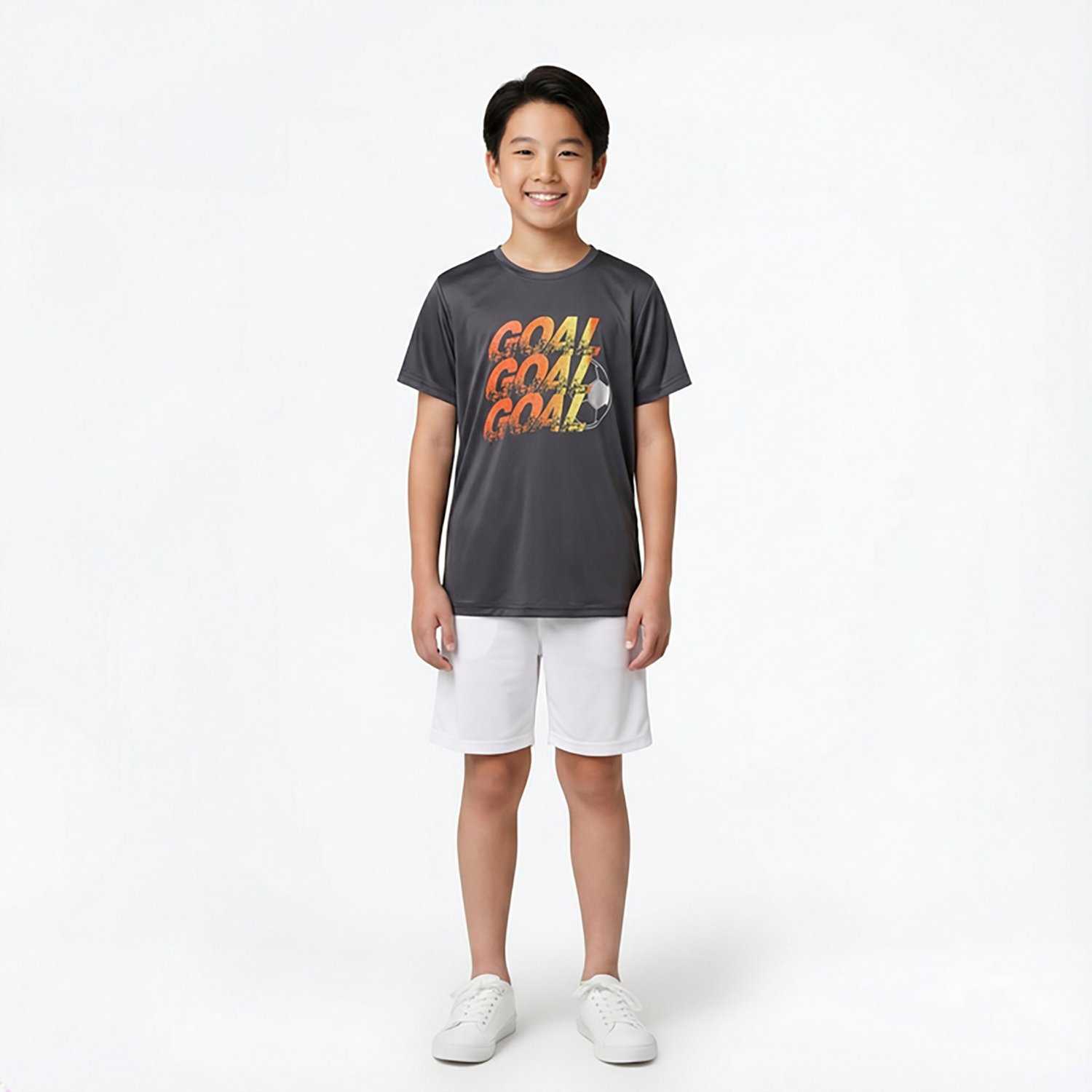 The BCG Boys' GOAL Short Sleeve Tee is perfect for boys who live for the game! Its cool, breathable fabric keeps him feeling fresh, while the bold graphic lets everyone know he’s serious about scoring. Whether he’s practicing or playing, this tee brings out his A-game.