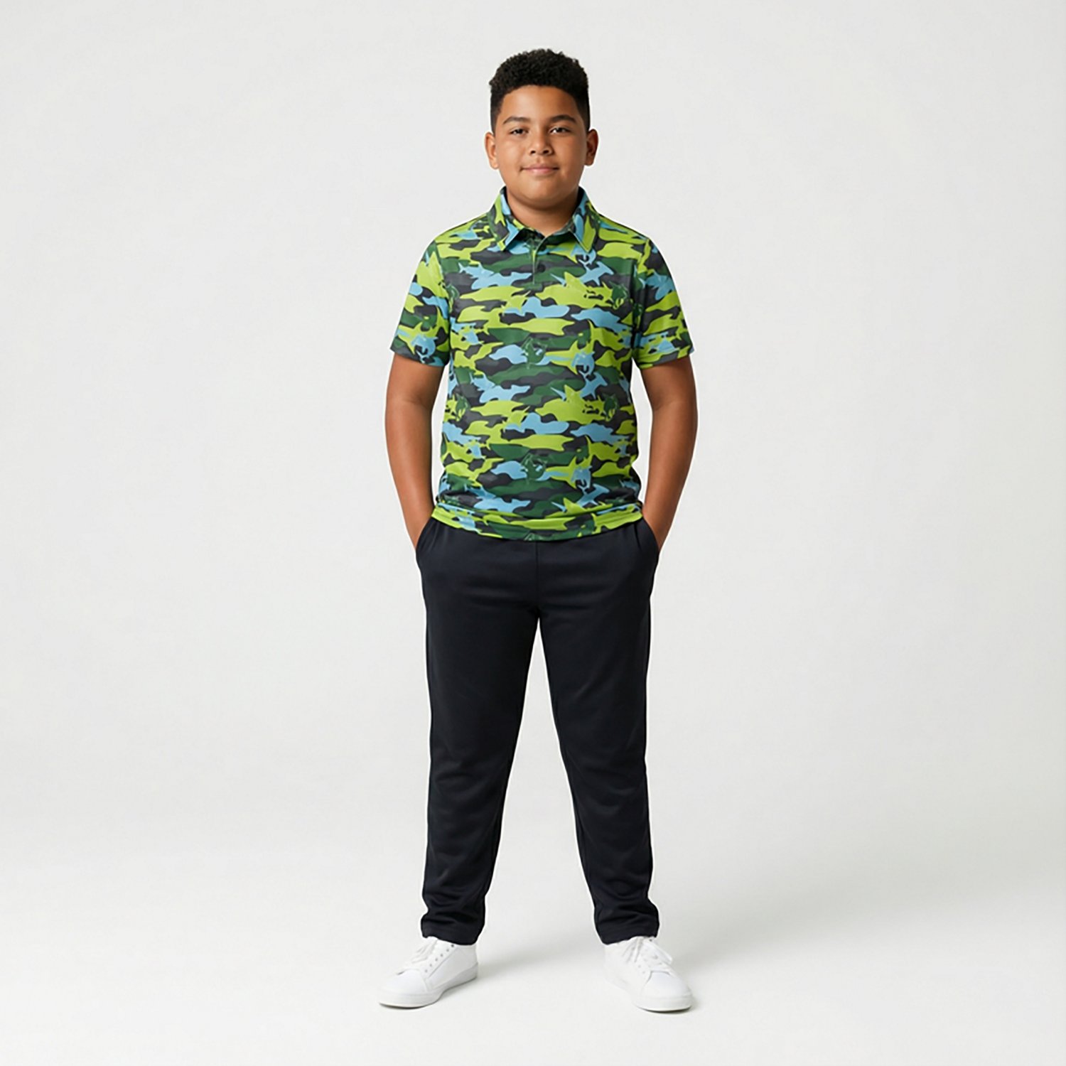 Develop your skills in comfort with the BCG Boys' Golf Shark Camo Short Sleeve Polo Shirt. The semifitted design gives you an easygoing wearing experience, and the moisture-wicking fabric reduces the impact of water or sweat. The allover printed body makes the shirt stand out, and the collar gives you a polished appearance.