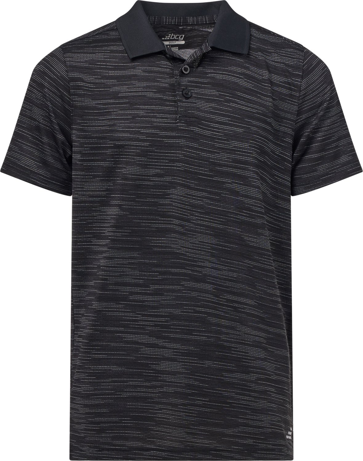 Tee off with the BCG Boys' Golf Space Dye Polo Shirt. The polyester material provides a comfortable feel, while the moisture wicking technology helps keep you cool and dry.