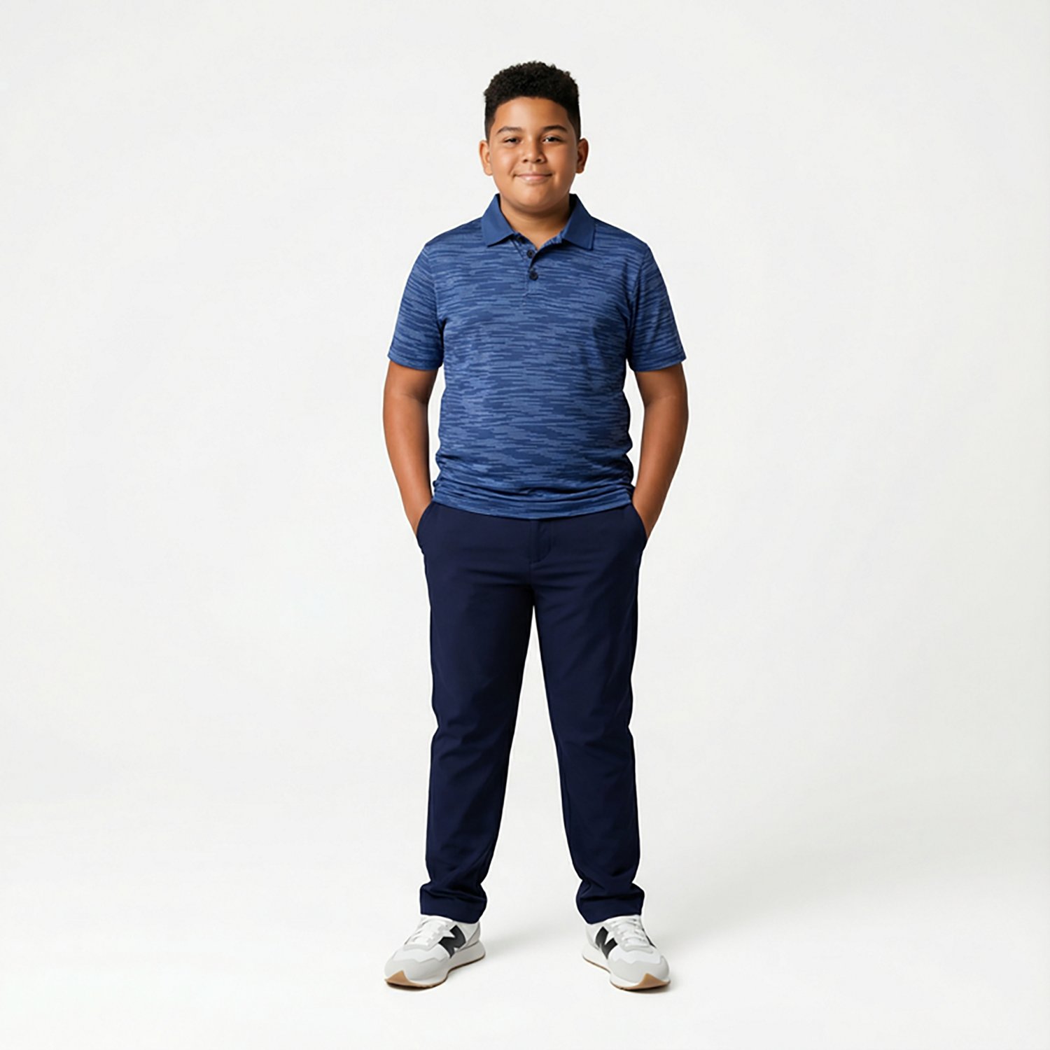 Tee off with the BCG Boys' Golf Space Dye Polo Shirt. The polyester material provides a comfortable feel, while the moisture wicking technology helps keep you cool and dry.