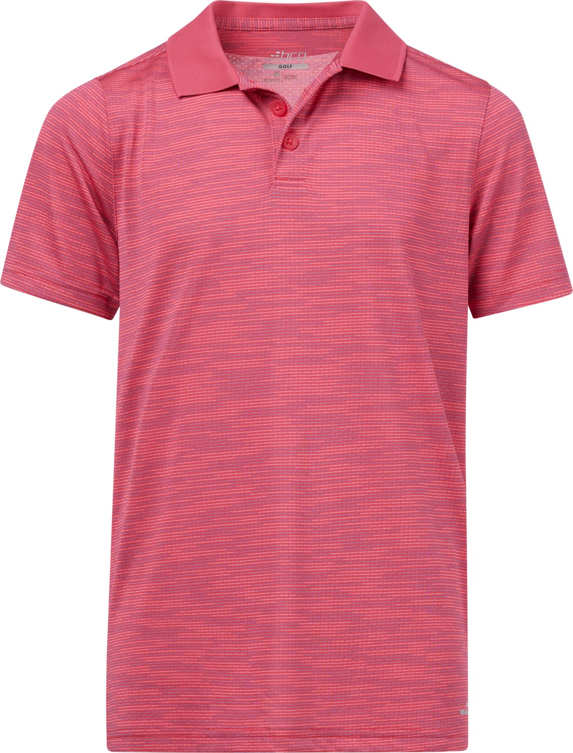 Tee off with the BCG Boys' Golf Space Dye Polo Shirt. The polyester material provides a comfortable feel, while the moisture wicking technology helps keep you cool and dry.