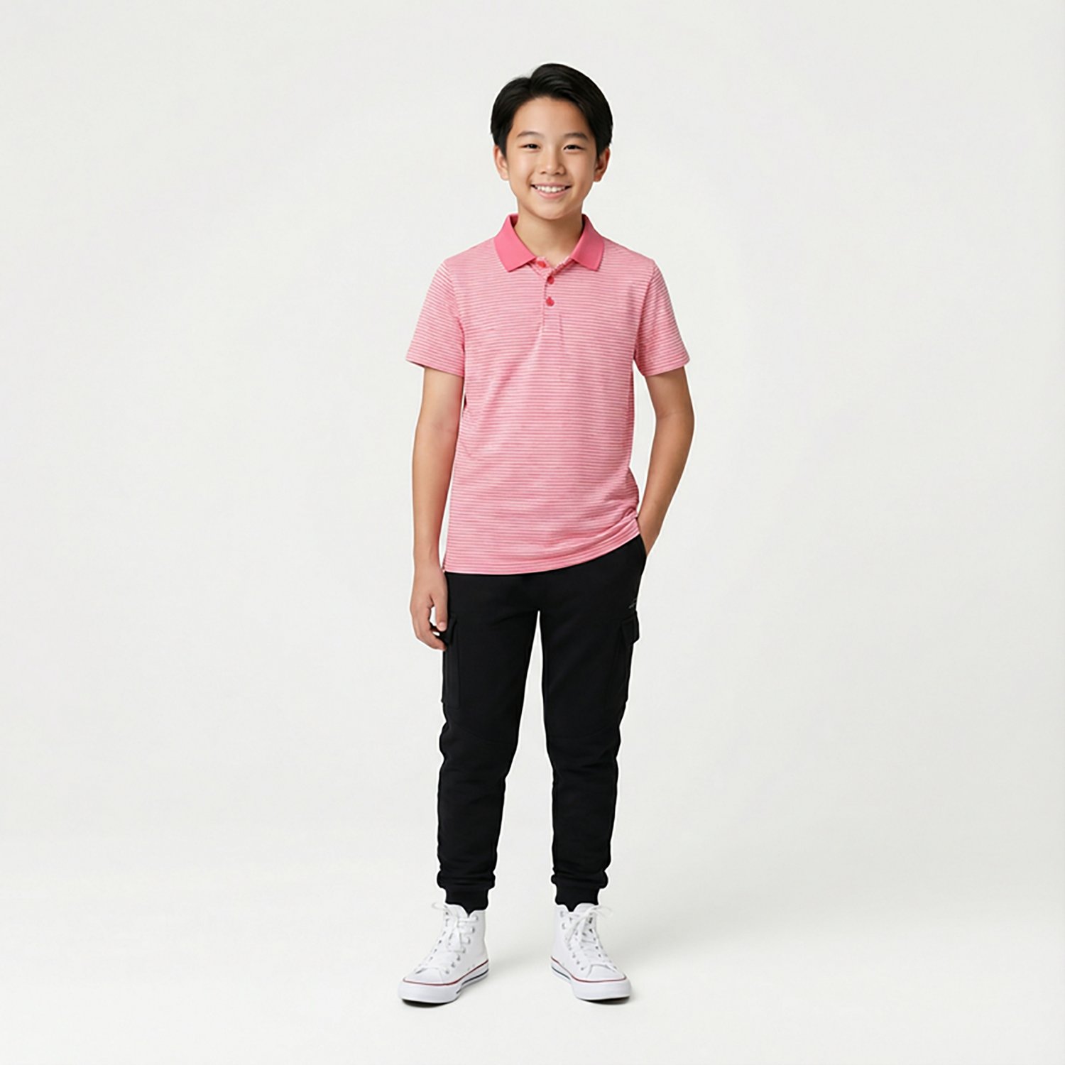 He can head to the course wearing the BCG Boys' Golf Stripe Polo Shirt. The moisture-wicking technology helps him stay cool and dry in the heat, and the ribbed collar with a 3-button placket adds a sleek touch. The striped design offers an eye-catching appearance.