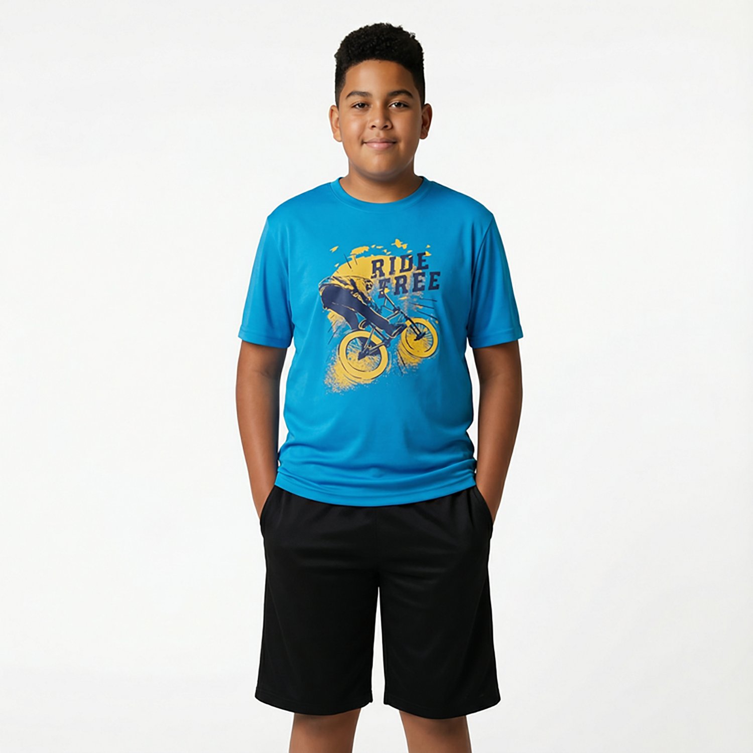 Show off your stylish side when you wear the BCG Boys' Lifestyle Ride Free T-shirt. The cotton and polyester construction provides a blend of comfort and durability, while the graphic design offers an eye-catching appearance.