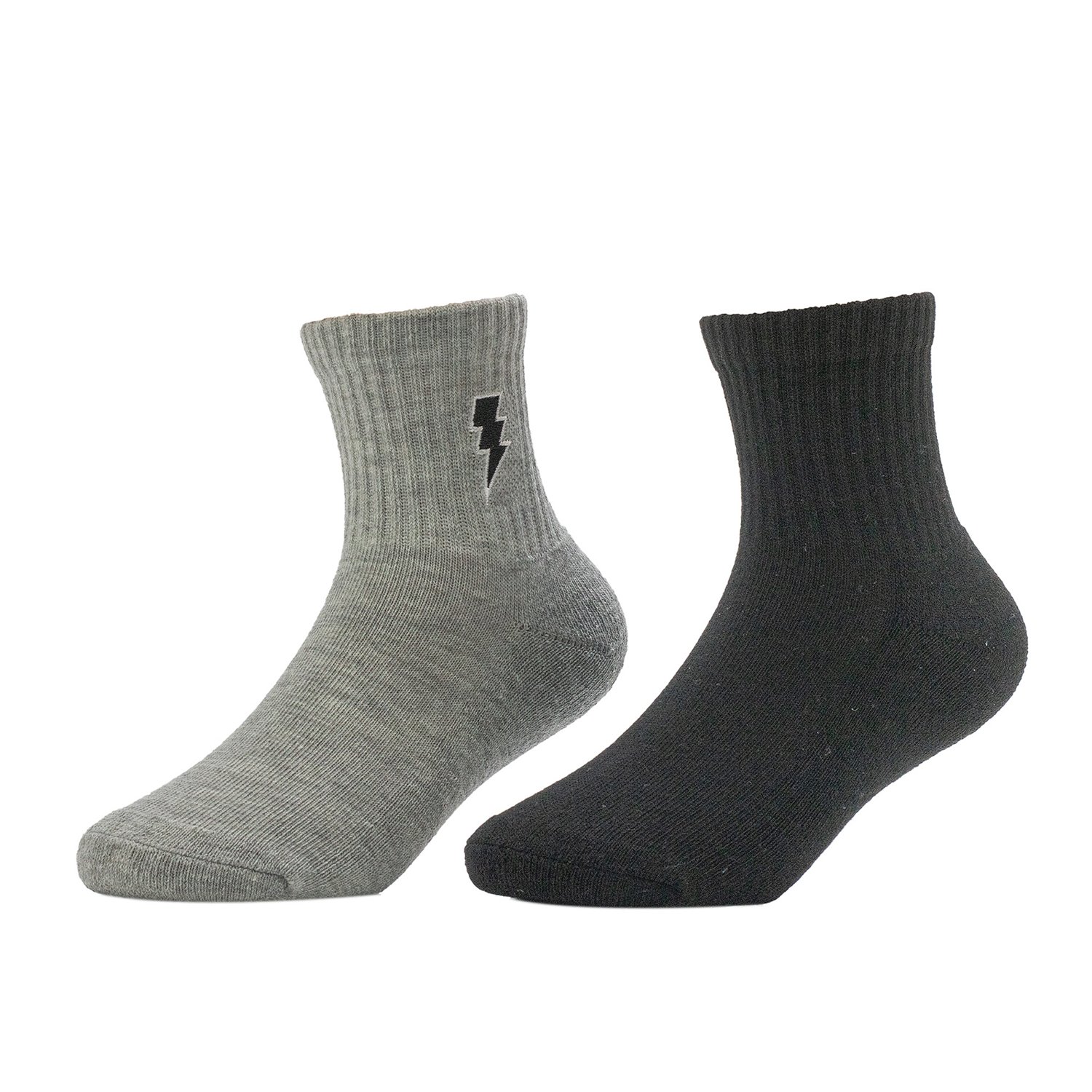 Look your best when you wear the BCG Boys' Lightning Bolt Quarter Socks 2-Pack. They are made of 96% polyester, 2% rubber, and 2% spandex. The half cushion construction improves comfort, and their ribbed leg adds a unique detail. The embroidered lightning bolt design produces a playful vibe.