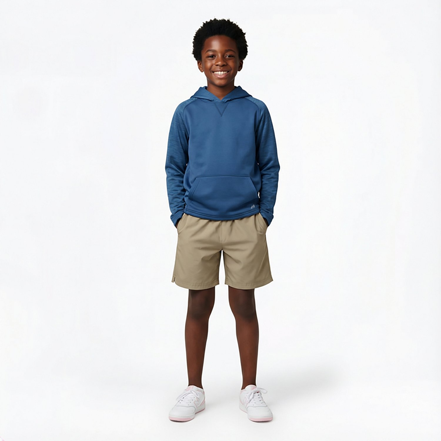 Keep kids comfortable on the playground or at sports practice with the BCG Boys' Playground Shorts. The durable polyester construction is water-repellent for extra protection. The elastic waistband tightens with a drawstring, while side vents help him move freely.