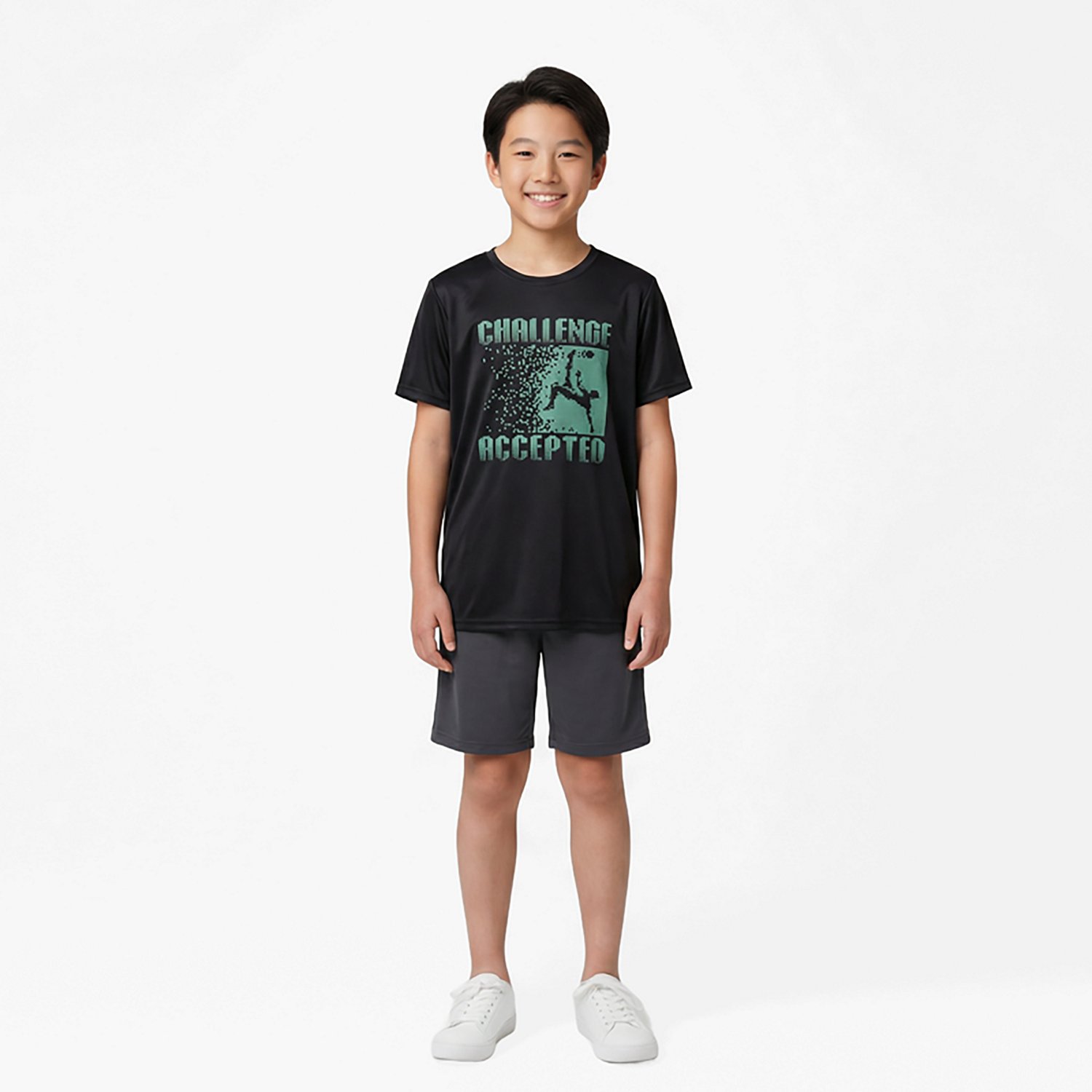 The BCG Boys' Training Challege Accepted Short Sleeve offers machine wash cold, gentle cycle with like colors for ultimate comfort. With comfortable short sleeves and lightweight, moisture-wicking polyester fabric, it’s designed for ease during active or casual days. A must-have for any wardrobe that blends comfort and style.