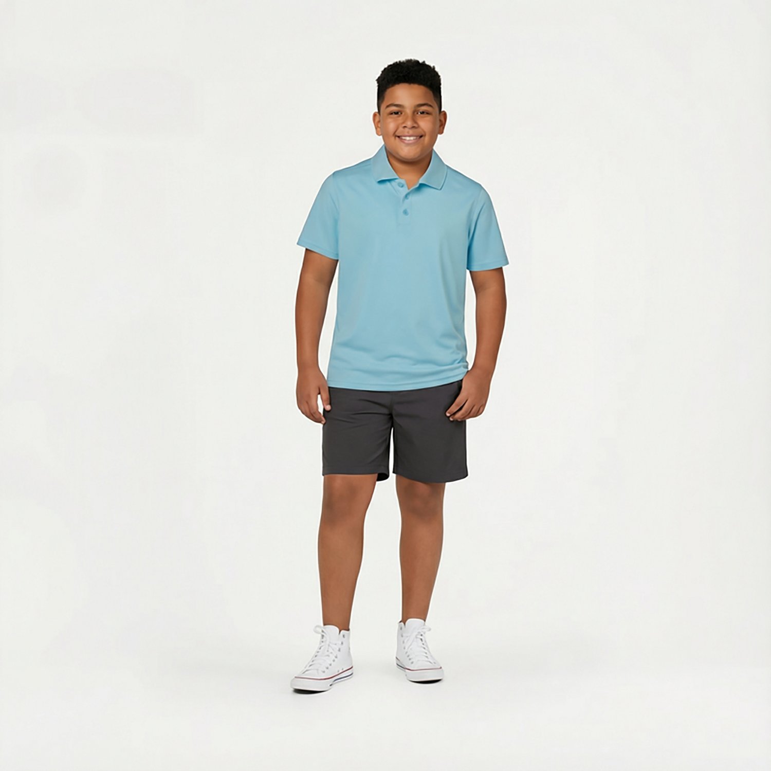 Features and Benefits 100% polyester for lightweight comfort 3-button placket Short sleeves Collar Specifications Compression: No Clothing Type: Athletic Shirts Neckline: Collar Sleeve length: Short Sleeve Material technology: Recycled Materials Activity: Training,Tennis Material: Polyester Heat Retention: No Gender: Boys' Size Range: Boys' (8 - 20) Moisture Wicking: No Care: Machine Wash Product Type: Shirts Flame Resistant: No Age Group: Kids' Style: Polos Hood: No Placket: 3-Button What's in the Box BCG Boys' Training Solid Short Sleeve Polo Shirt
