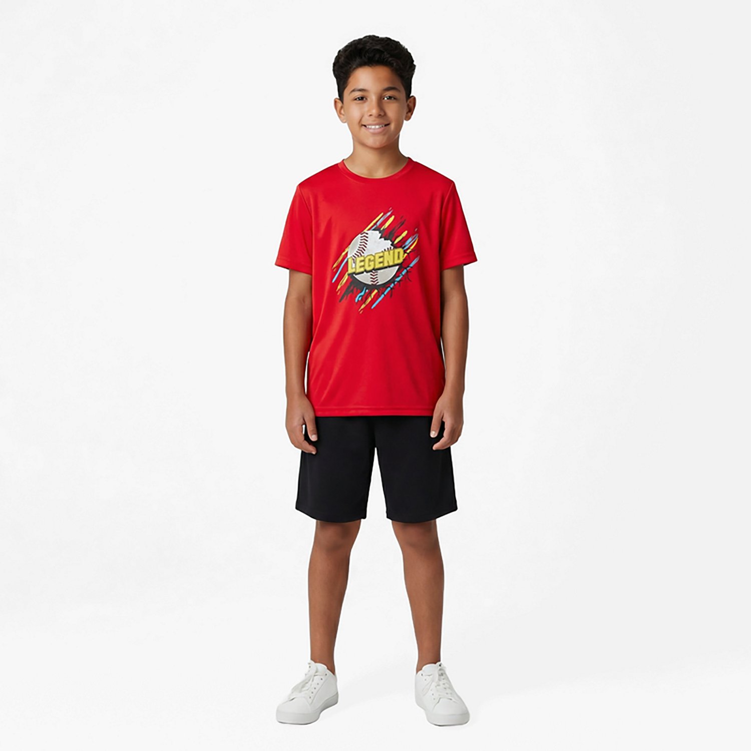 Add the BCG Boys' Turbo GFX T-shirt to your closet to have a stylish and soft option for everyday wear. This T-shirt is made of 100% polyester with a crew neck, short sleeves and a classic fit for casual comfort, and the graphic design means you can show off your fashionable side.