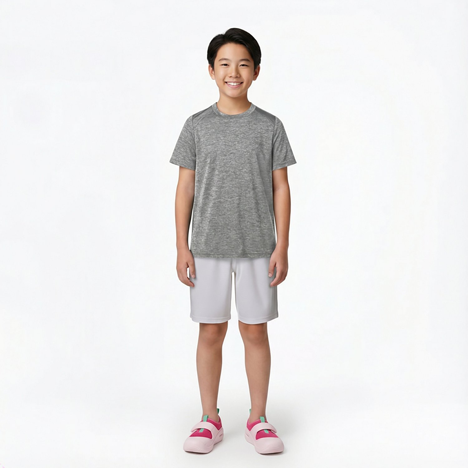 Work up a sweat in the BCG Boys' Turbo Melange T-shirt. The polyester melange jersey knit fabric provides a soft feel, while the short sleeves and crew neck offer a comfortable fit.