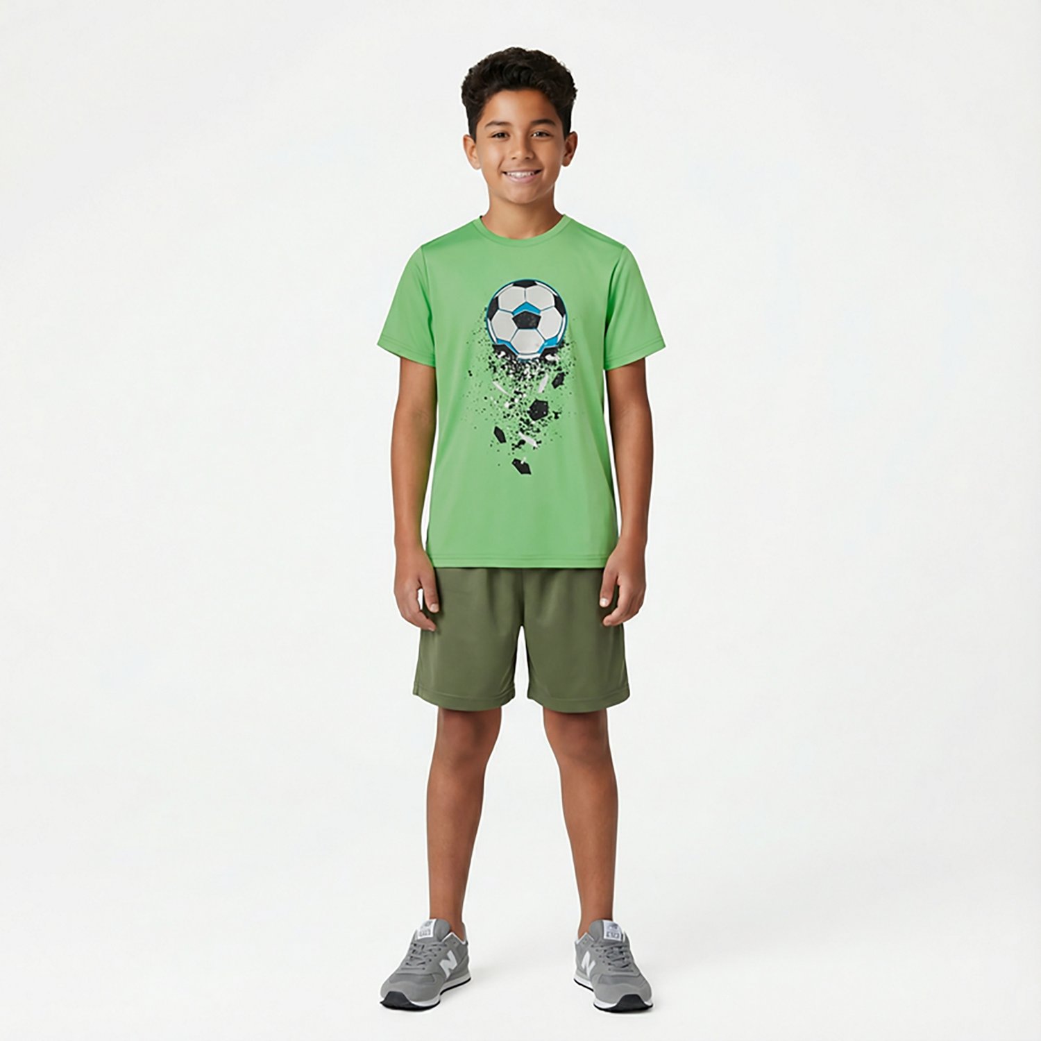 Have your little one looking their best in the BCG Boys' Turbo Soccer Speckle Short Sleeve T-shirt. It is made of 100% polyester for lasting wear, and the graphic of a soccer ball on the chest creates a sporty vibe.