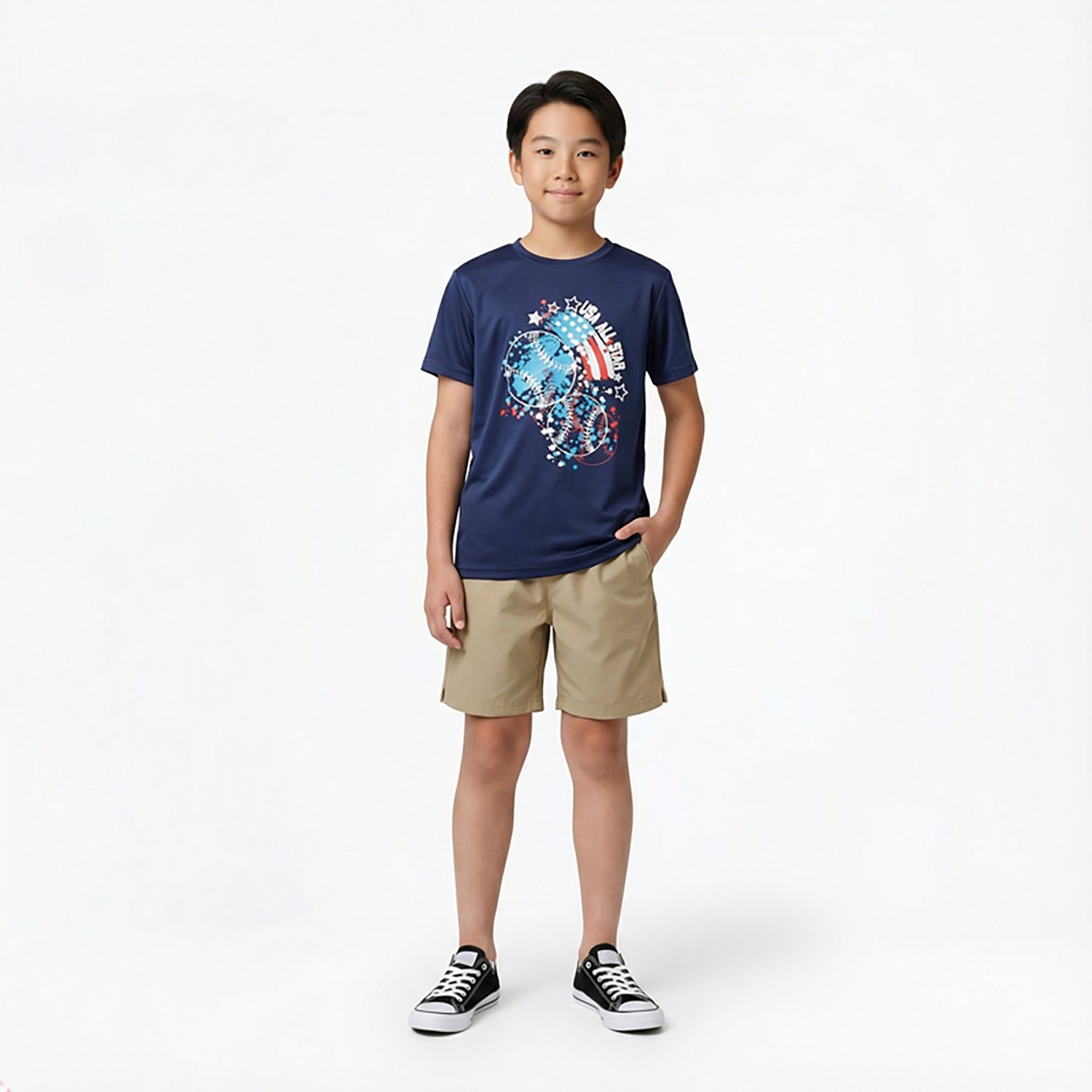 Show off your cool skills with the BCG Boys' Turbo USA All Star Graphic T-shirt. The polyester material provides a comfortable feel, while the moisture wicking technology helps keep you cool and dry. The graphic design offers a stylish look.