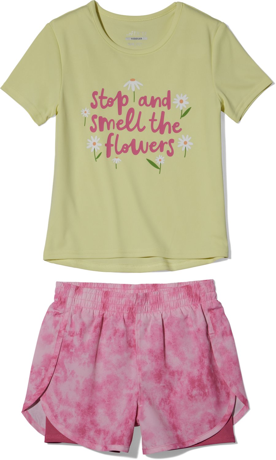Keep your little one comfortable and stylish at the same time with the BCG Girls’ 4-6X Short-Sleeve Smell Flowers 2-in-1 Short Set. Made of polyester interlock on the top and woven polyester material on the bottoms, they'll stay ready for any play day in the backyard or at the park. The adorable graphic on the front ensures they show off their bright personality.