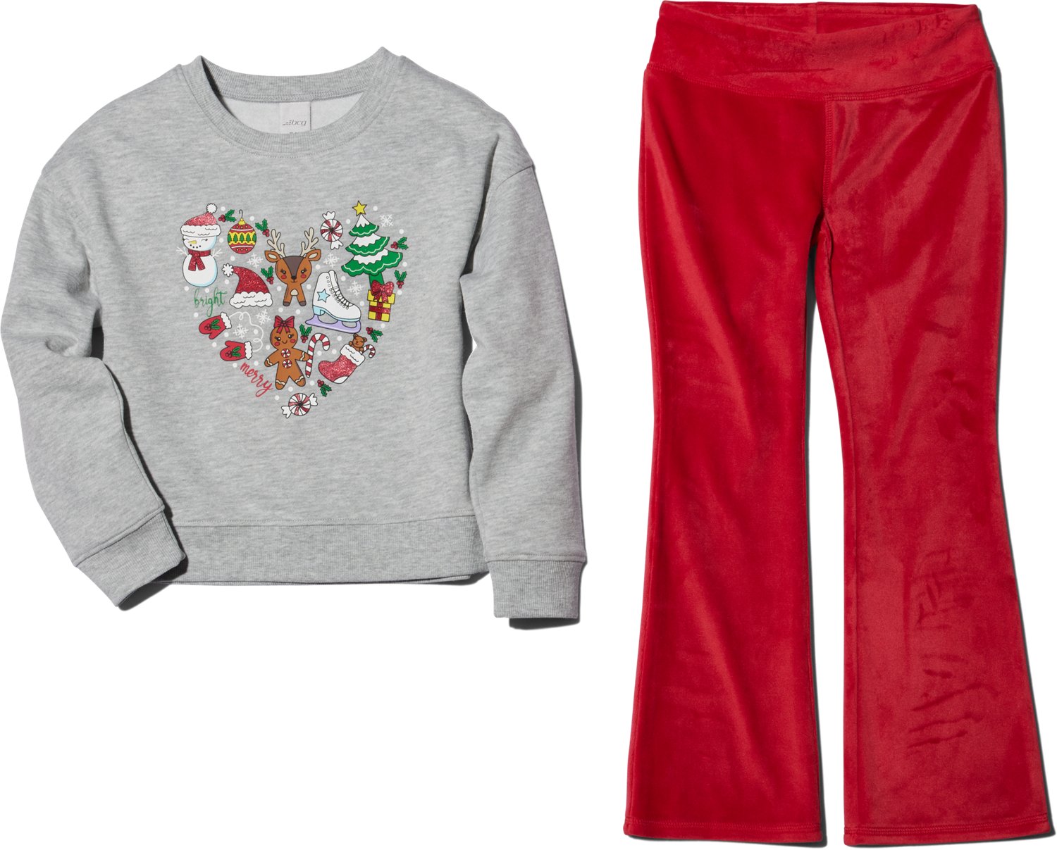 Have your little one looking their best when they wear the BCG Girls' 4-6X Christmas Fleece Crew 2-Piece Set. Its top is made of CVC fleece. The long sleeves keep them warm, and its crew neckline creates a casual look. The Christmas graphic adds a jolly touch.