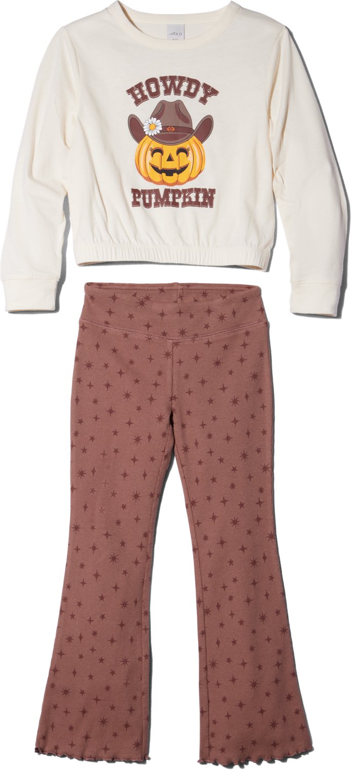BCG Girls' 4-6X Howdy Pumpkin Cinched Fleece Crew 2-Piece Set