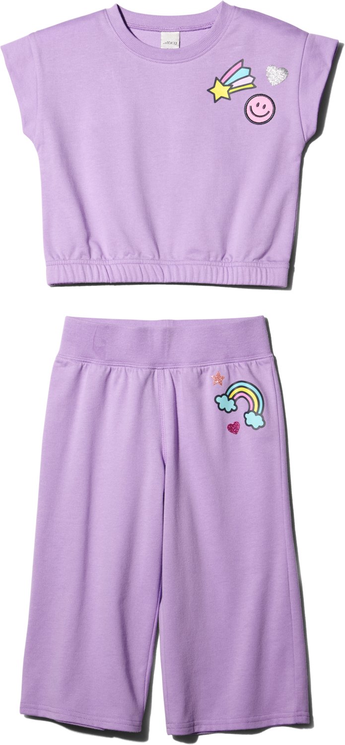 Have your little one looking their best when they wear the BCG Girls' 4-6X Wide Leg Pants 2-Piece Set. Its top and bottom are made of French terry fabric. The short sleeves keep them cool, and its wide legs offer more room to play. The fun graphics add a playful touch.