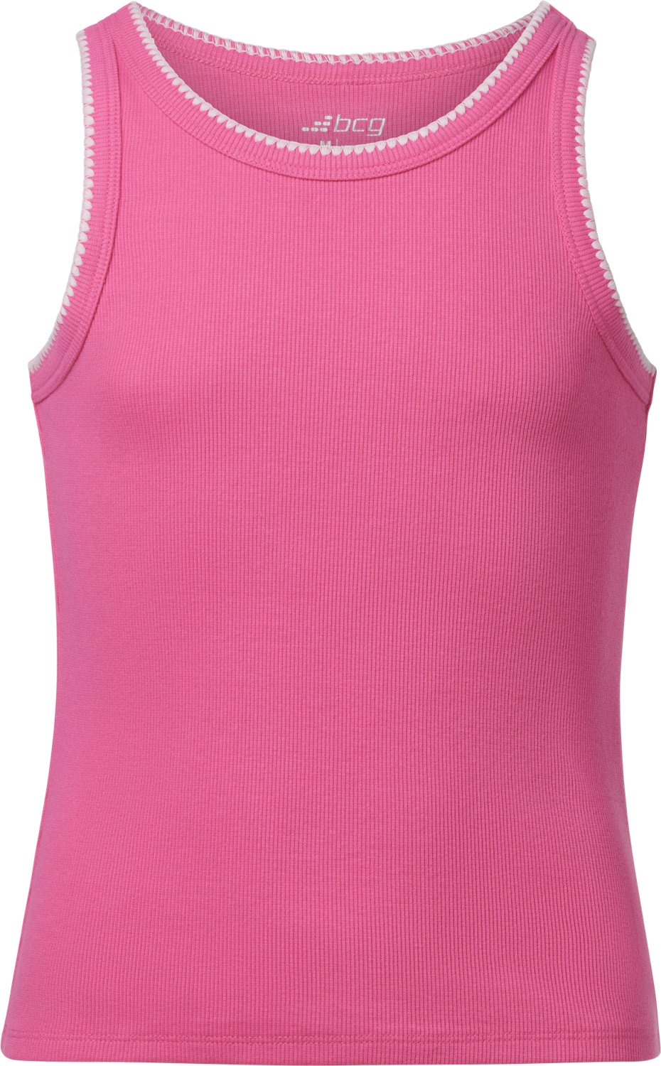 The BCG Girls' Blanket Stitch Rib Tank blends casual lifestyle comfort with a sporty aesthetic. Crafted from a soft polyester and spandex blend, this tank provides a flexible, body-hugging fit that moves with her during any activity. The standout feature is the contrast blanket stitch detailing along the neckline and armholes, providing a handcrafted look, while the ribbed knit fabric adds a touch of sophisticated texture to her activewear collection.