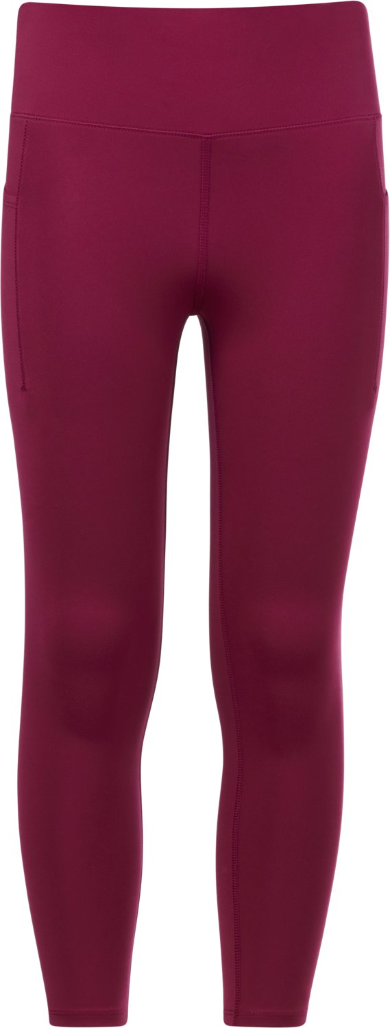 Look your best in the BCG Girls' Core 7/8 Leggings. They are made of 84% recycled polyester and 16% spandex. The moisture wicking technology keeps you dry, and their high-rise fit provides plenty of coverage. The 7/8 length makes your legs look longer.