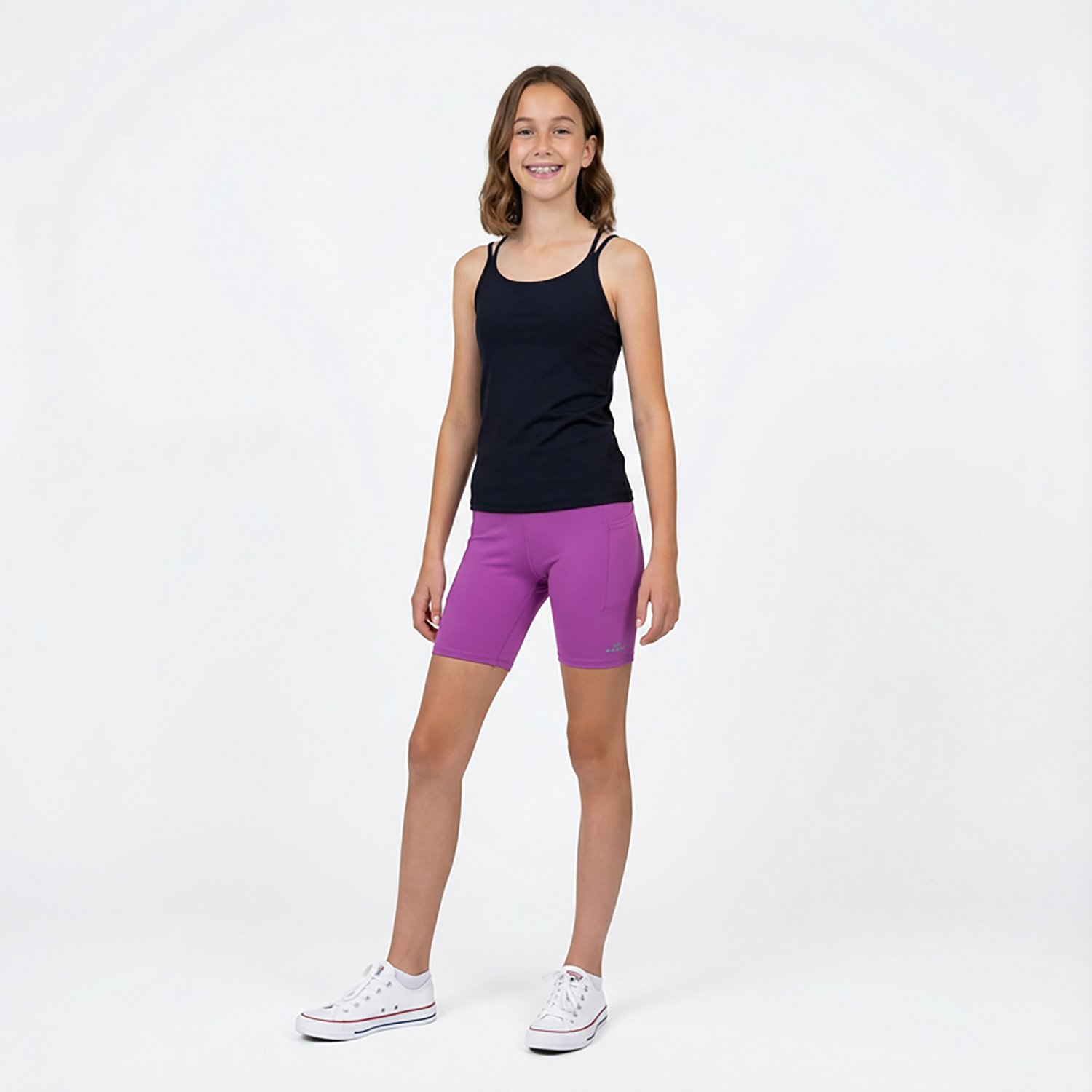 Ride all day long in the BCG Girls' Core Bike Shorts. They are made of 92% polyester and 8% spandex. The moisture wicking technology helps keep them dry, and their high-waisted style offers more coverage. The right pocket holds onto small essentials.