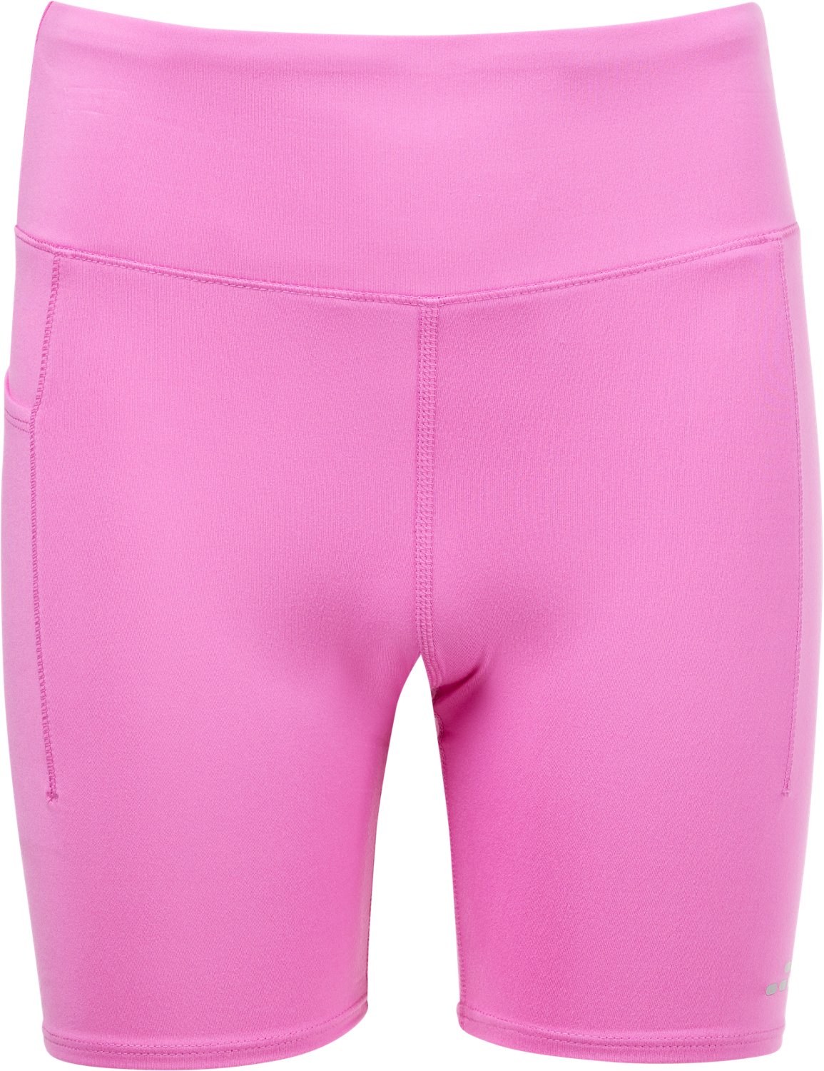 Ride all day long in the BCG Girls' Core Bike Shorts. They are made of 92% polyester and 8% spandex. The moisture wicking technology helps keep them dry, and their high-waisted style offers more coverage. The right pocket holds onto small essentials.
