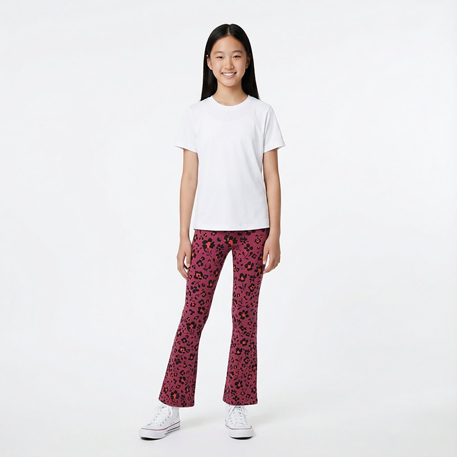 Step out in comfort in the BCG Girls' Cotton Flare Printed Leggings. The high-waisted fit offers more coverage, and the flare bottoms provide a complimentary look. The printed pattern adds a fashionable touch, and the 95% cotton knit and 5% spandex jersey construction withstands wear and tear while feeling soft.