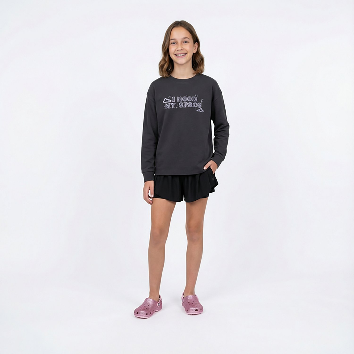 BCG Girls' Cotton Need Space Graphic Long Sleeve T-shirt