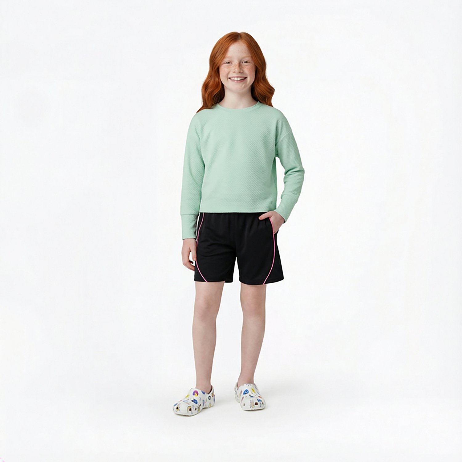 Step out feeling confident and comfortable in the BCG Girls' Court BB Shorts. The 100% polyester construction offers a long-lasting feel, and the moisture-wicking technology helps you stay dry. The color block piping add a fashionable touch, and waistband with drawstring provides a custom fit.