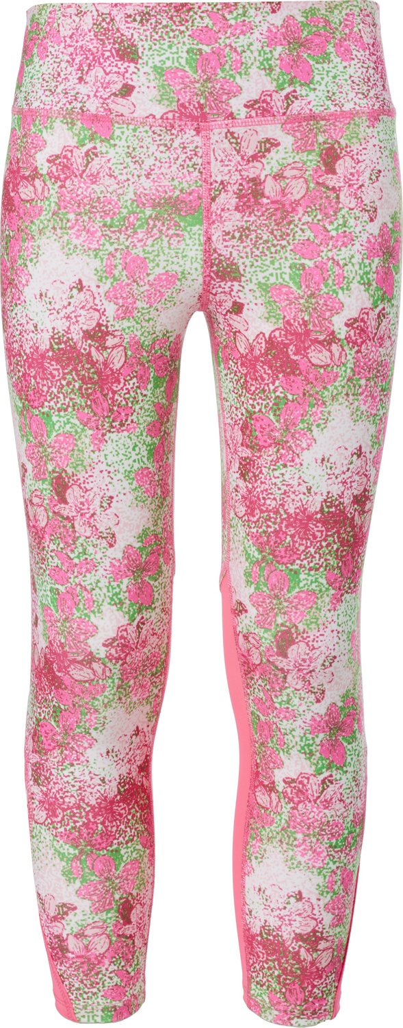 Dress to impress at the gym in the BCG Girls' Cut Out Printed 7/8 Leggings. The all-over print design highlights an eye-catching appearance, and the mesh panels boost breathability. The back pocket securely carries your key, and the leggings feature polyester and spandex construction.