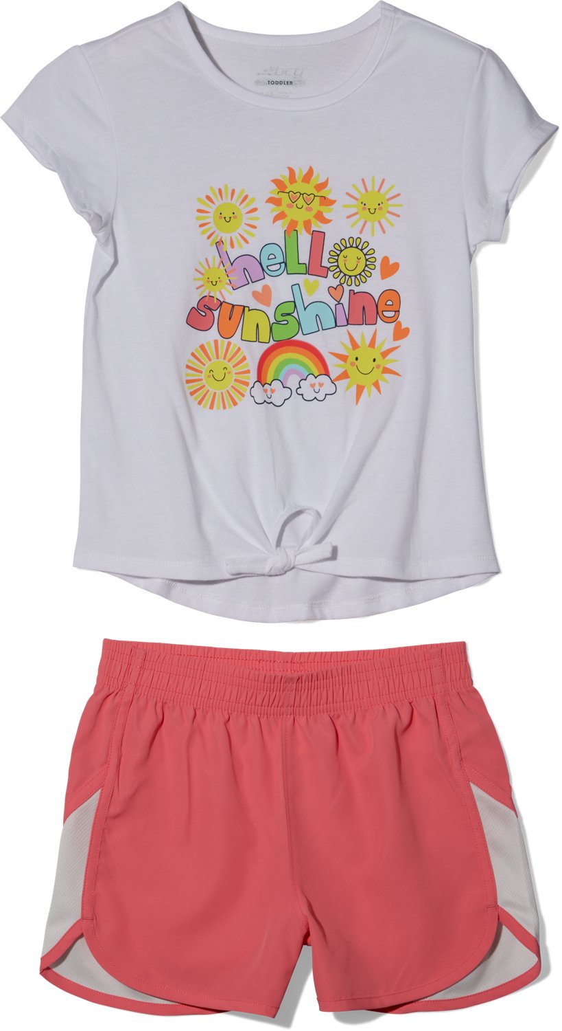 The BCG Girls' Front Tie Sunshine Short Set offers a cheerful look for your little one's daily adventures. This Girls' Toddler short set features short sleeves and a delightful front tie, capturing a sunshine-inspired style. As a versatile apparel clothing set, it provides comfort and playful fashion for active girls.