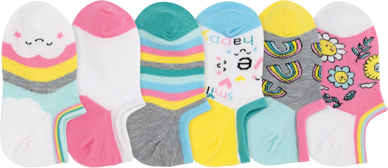 BCG Girls' Happy Rainbows Ultimate Hidden No Show Socks 6 Pack