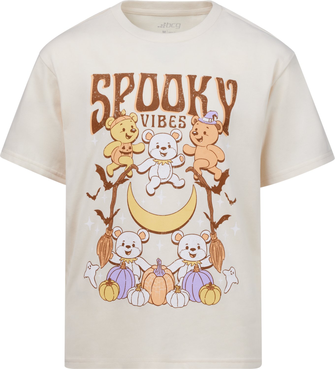 Show off your stylish side with the BCG Girls' Lifestyle Cotton Boxy Spook Vibe T-shirt. The cotton and polyester construction offers comfort and durability, while the graphic design adds an eye-catching appearance.