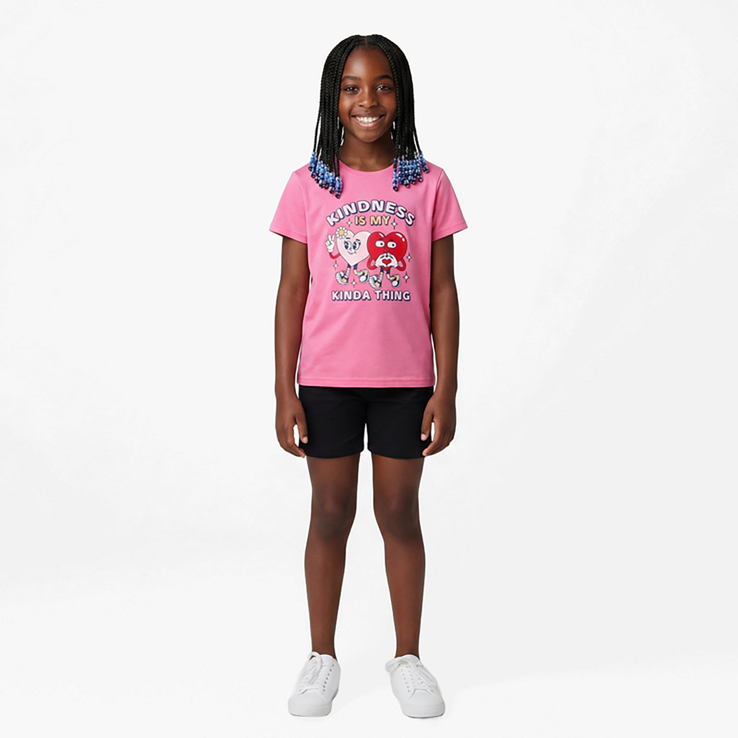Youngsters will love playing or relaxing when wearing the BCG Girls' Lifestyle Cotton Kindness T-shirt. This shirt is made of 66% cotton and 34% polyester jersey with short sleeves and a crew neck to provide comfortable wear and a casual style, and its front features a graphic that brings a bold look.