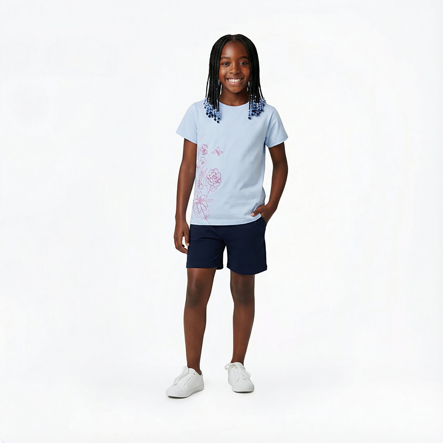 Features and Benefits Cotton material is soft and breathable Short sleeves Classic crewneck collar Fun and colorful embroidered graphic Specifications Clothing Type: T-Shirts Neckline: Crew Neck Product Type: Shirts Sleeve length: Short Sleeve Age Group: Kids' Activity: Casual Style: Graphic Tees Material: Cotton Gender: Girls' Size Range: Girls' (7 - 16) What's in the Box BCG Girls' Lifestyle Dainty Flowers Cotton GFX Short Sleeve Graphic T-shirt
