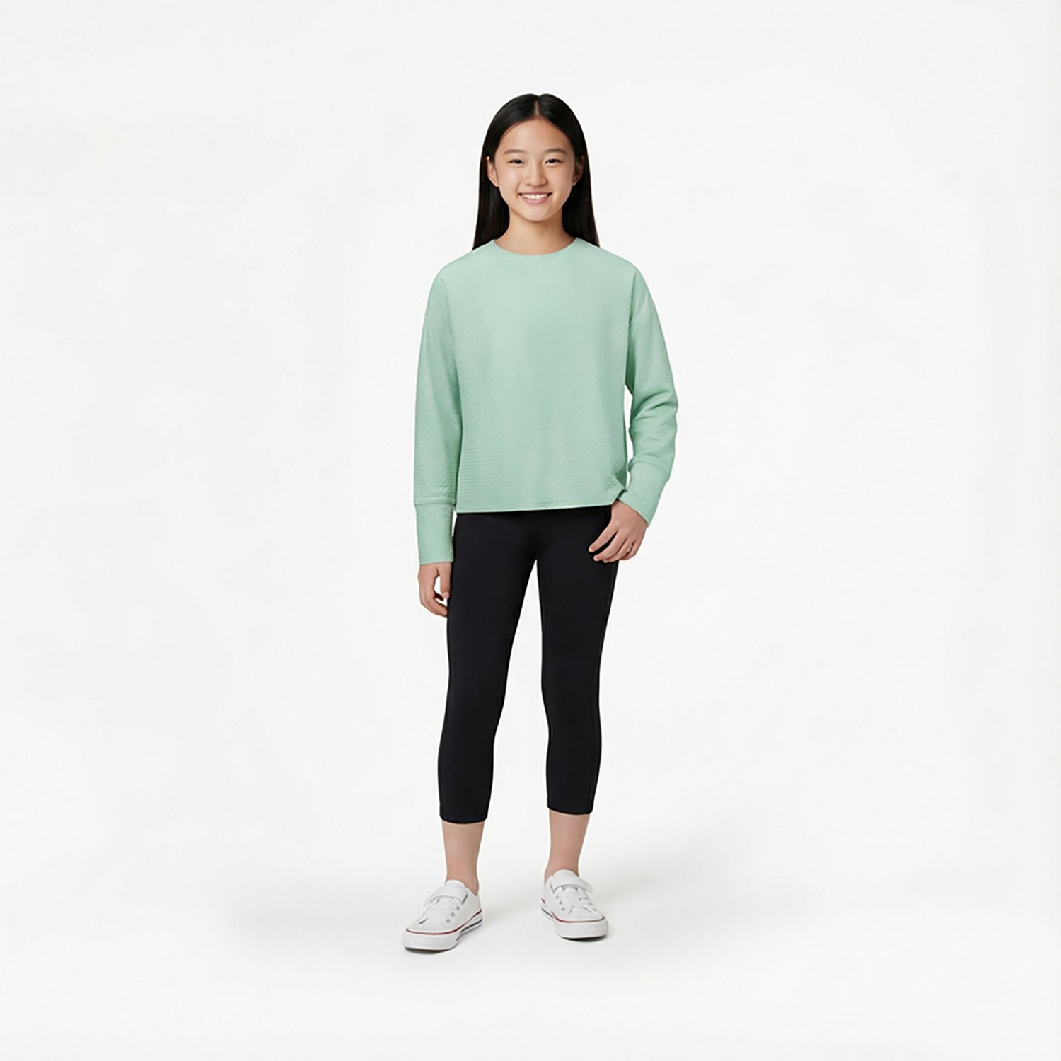 Train in comfortable apparel with the BCG Girls' Mesh Long Sleeve Top. The soft hand feel gives you an easygoing wearing experience, and the polyester and spandex material is built for frequent use. The long sleeves keep you warm, and the mesh pattern allows for airflow.