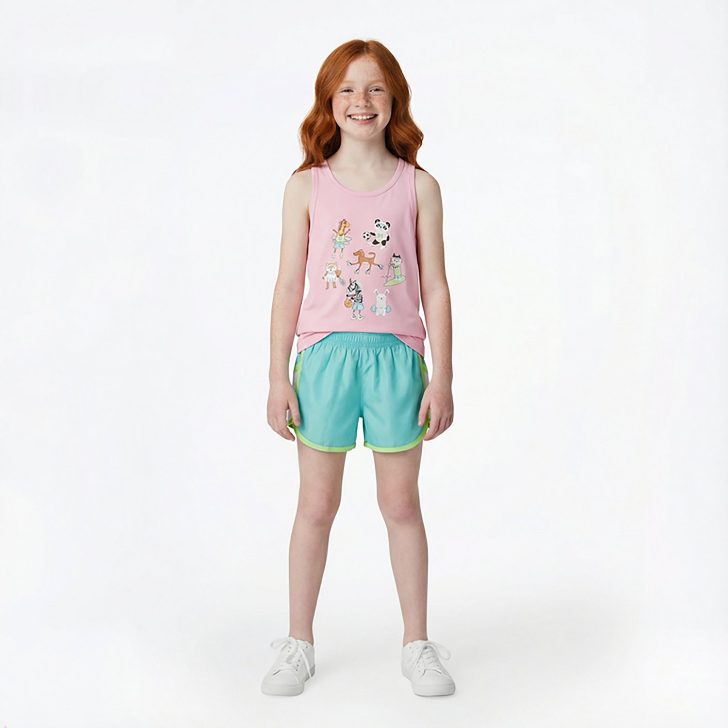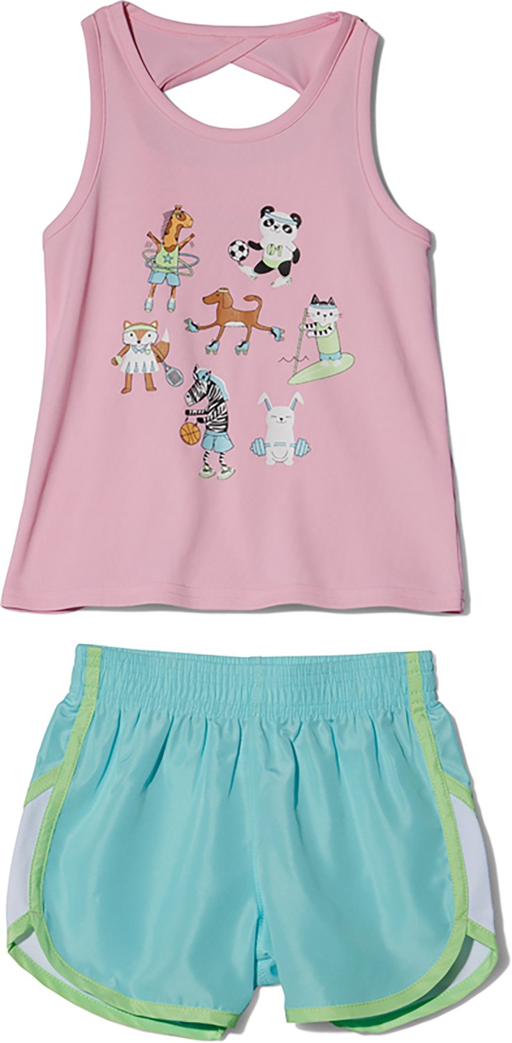 She'll play comfortably in the BCG Girls' Pineapple Tank Woven Short Clothing Set. This clothing set features a tank top with a printed pineapple graphic and woven shorts for a stylish look. The polyester material feels comfortable against her skin, while the elastic waistband helps the shorts stay in place as she moves. The cut-out back on the tank top lets her move freely.