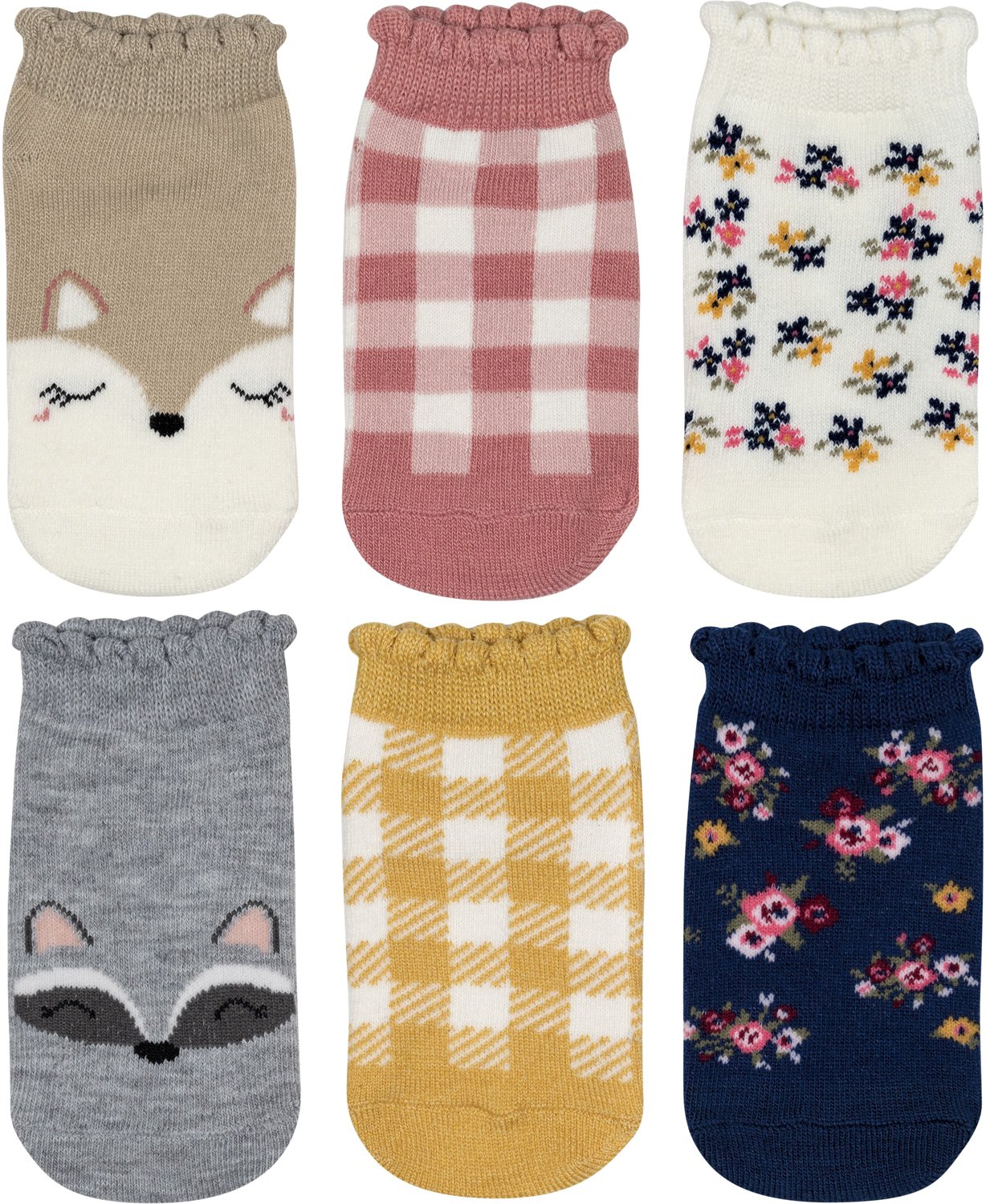 BCG Girls’ Plaid Woodland Animal No Show Socks 6 Pack