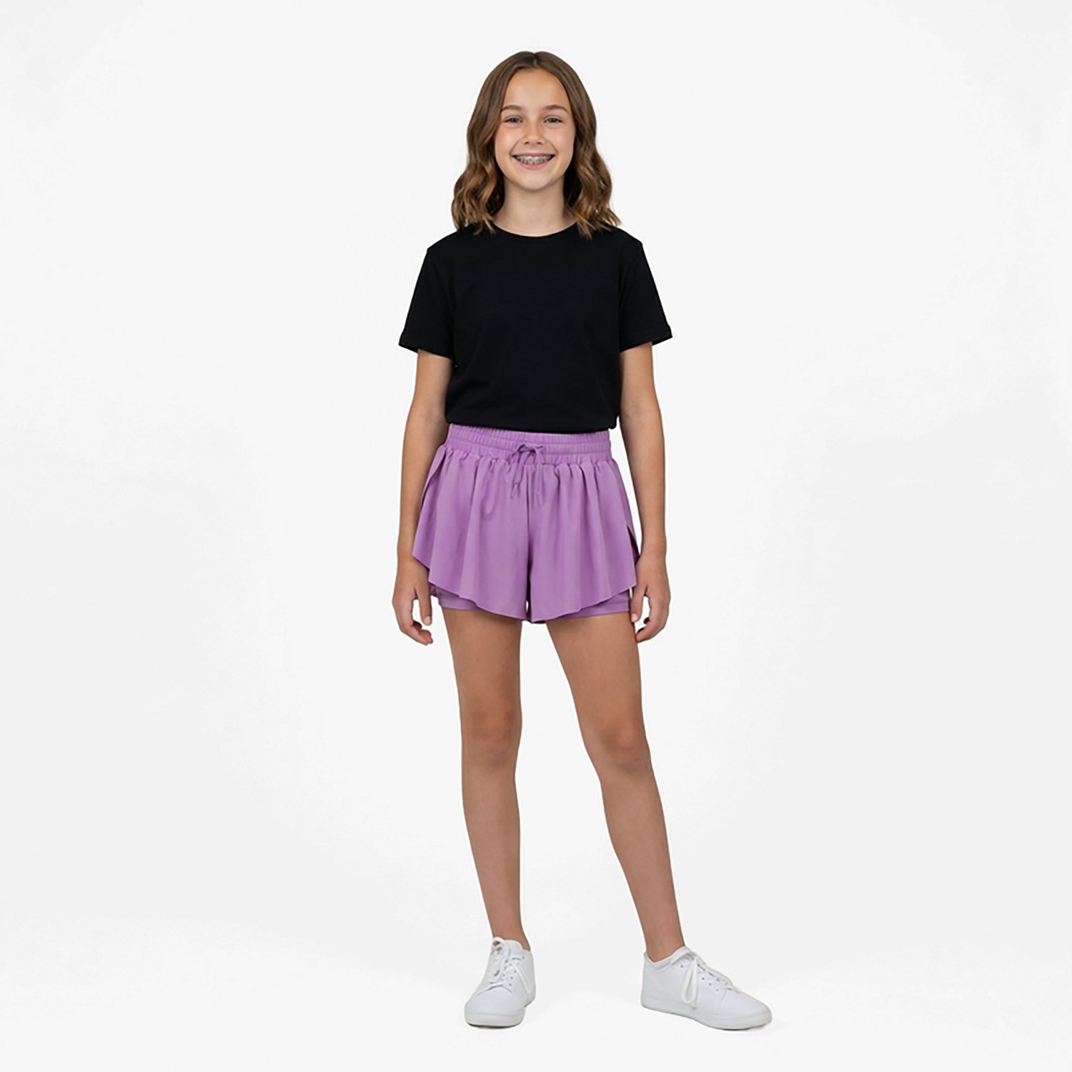 Go with the flow by wearing the BCG Girls' Run Flowy Shorts 3.5 in. The polyester and spandex material provides a comfortable feel, while the moisture wicking technology helps keep you cool and dry. The encased knit waistband and interior elastic drawstring combo offers a custom fit, and the antimicrobial technology eliminates odor for a fresh feel.