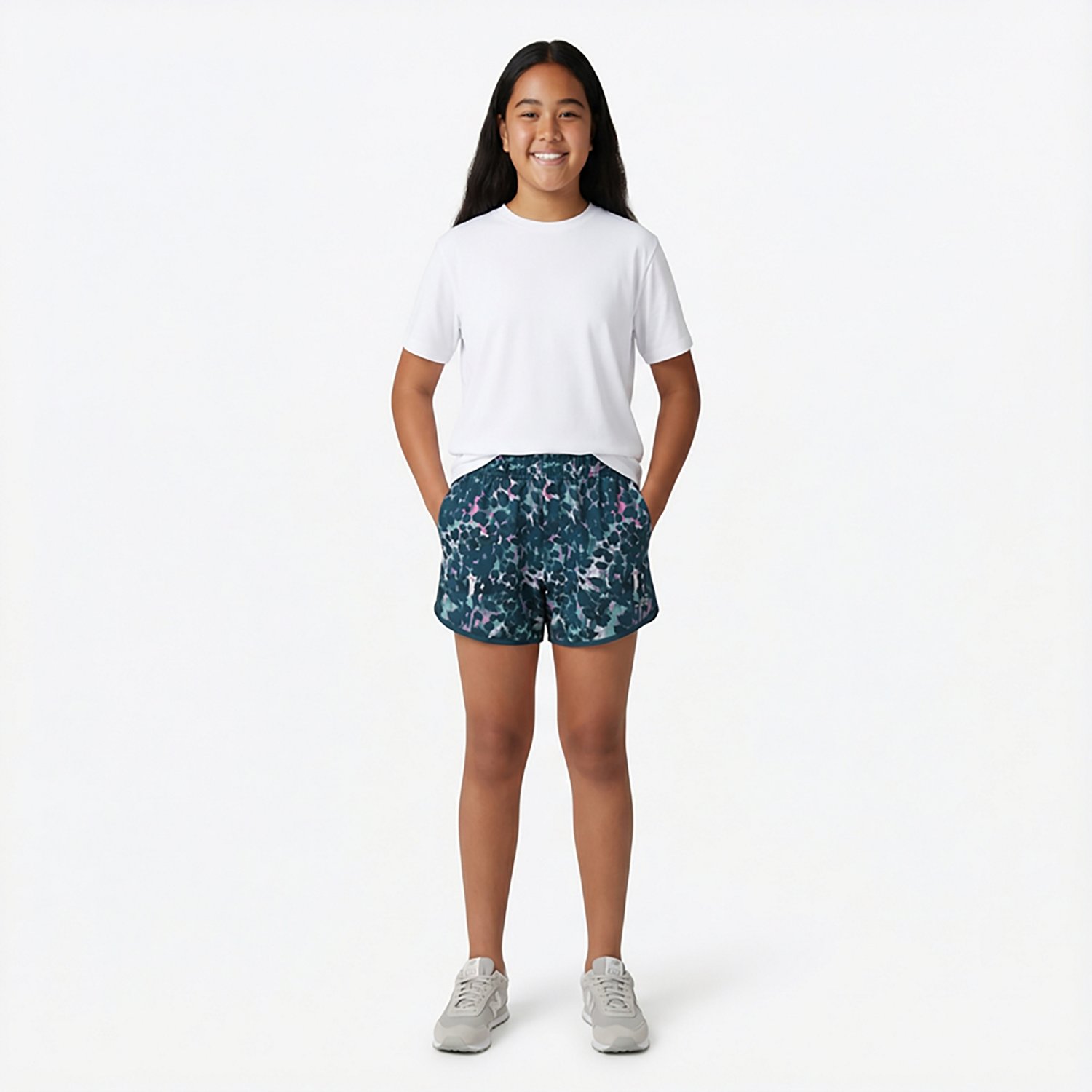 Go for a run with the BCG Girls' Run Race Print Shorts 3.5 in. The polyester and elastane material provides a comfortable feel, while the moisture wicking technology helps keep you cool and dry. Built-in antimicrobial technology reduces odor for a fresh feel, and the elastic waistband and drawstring combo offers a custom fit.