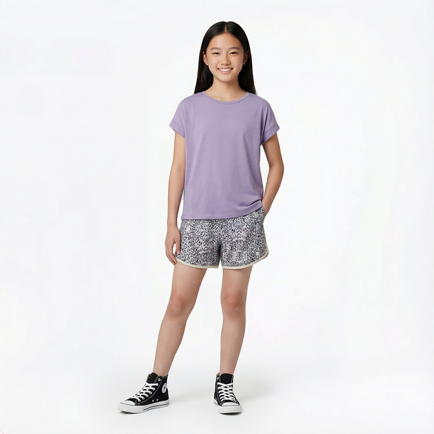 Go for a run with the BCG Girls' Run Race Print Shorts 3.5 in. The polyester and elastane material provides a comfortable feel, while the moisture wicking technology helps keep you cool and dry. Built-in antimicrobial technology reduces odor for a fresh feel, and the elastic waistband and drawstring combo offers a custom fit.
