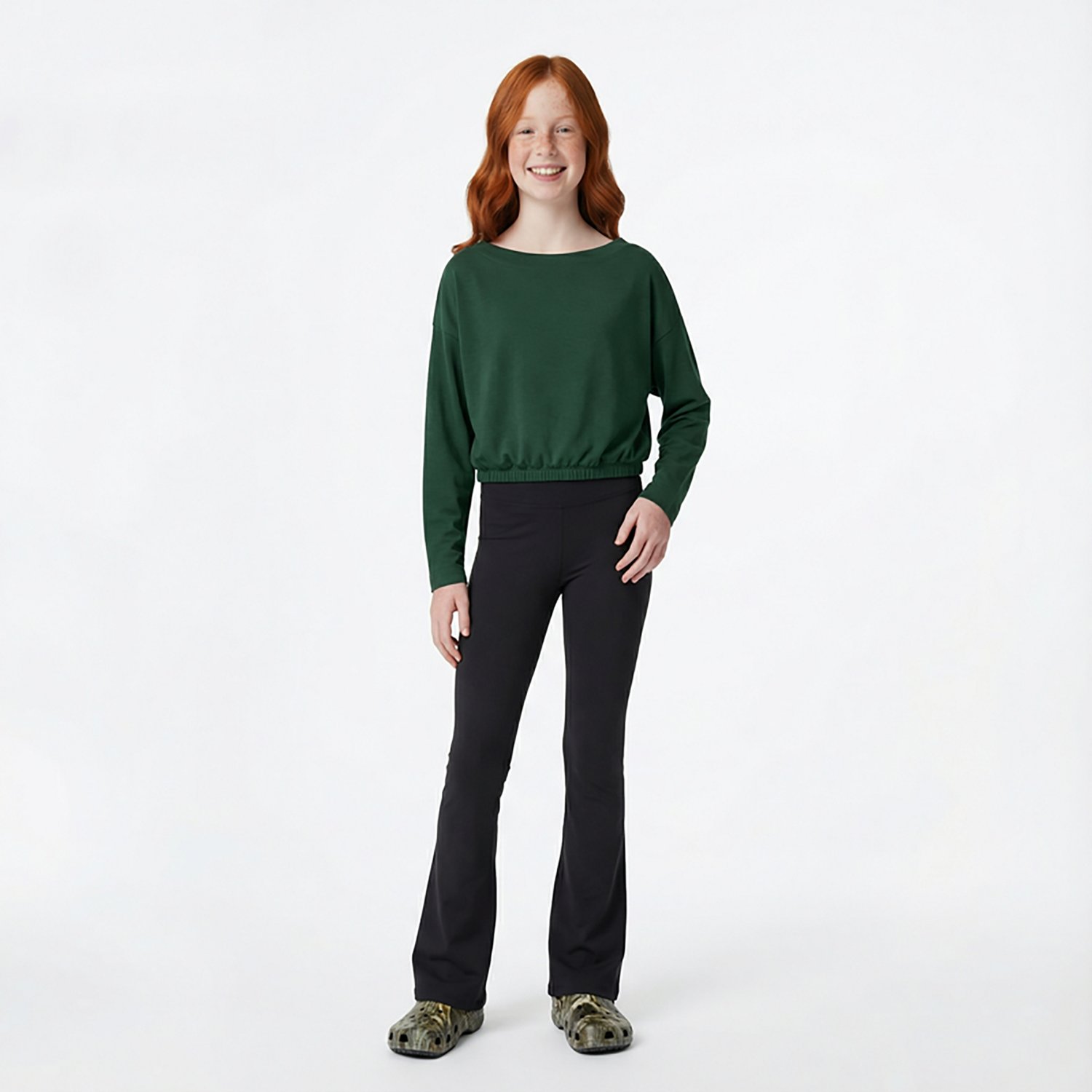 Enjoy a chic style in comfort with the BCG Girls' Shoulder Play Long Sleeve T-shirt. The polyester, rayon and spandex blend jersey material is soft and comfortable, and the relaxed fit cut is easy to wear and fashionable.
