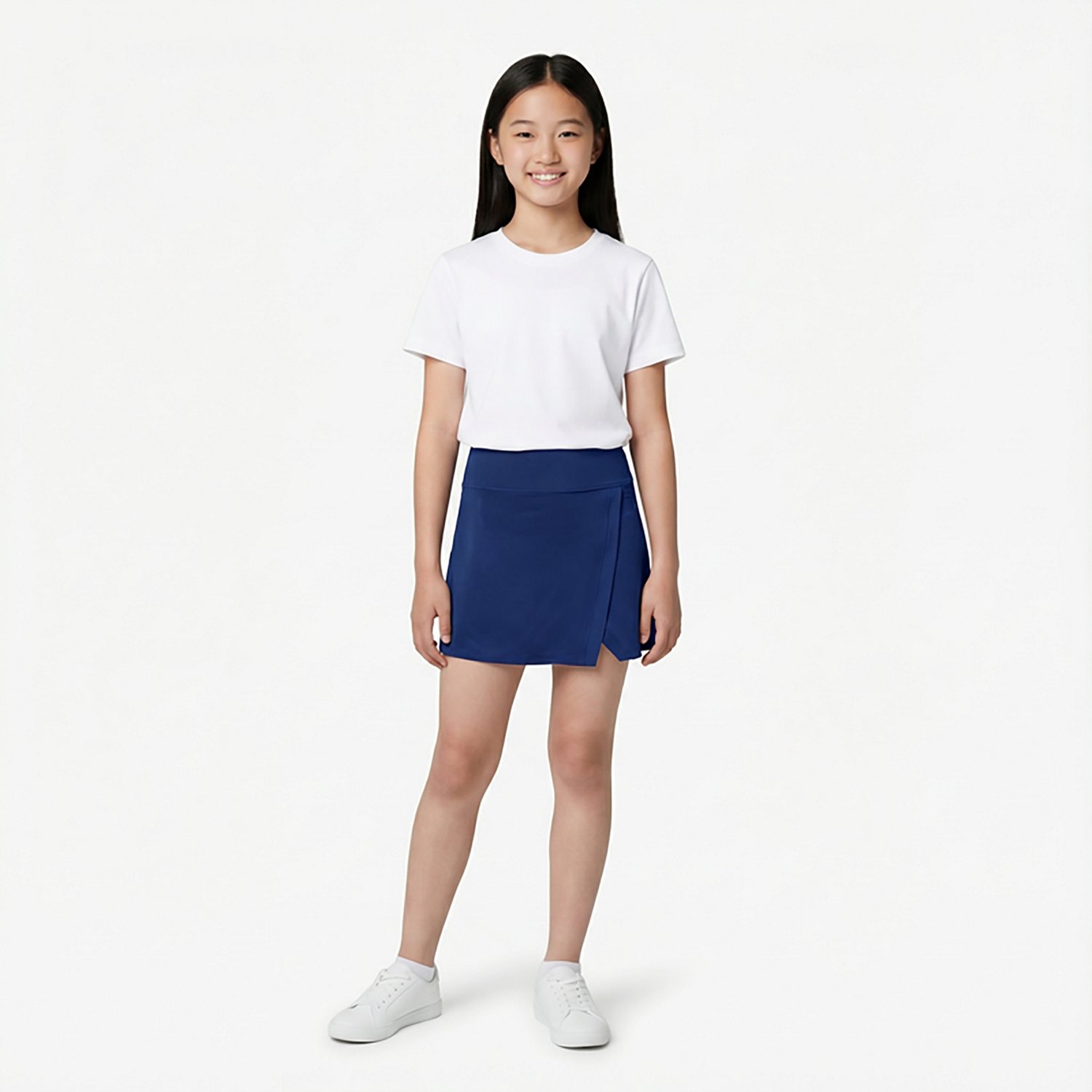 Show off her ace style on and off the court with the BCG Girls' Tennis Core Swing Split Skort. Made of a moisture-wicking blend of polyester and spandex, this stretchy skort helps her stay dry and comfortable. The UPF 50 sun protection shields your skin from UV rays, and the fitted silhouette with an asymmetrical side split adds flare.