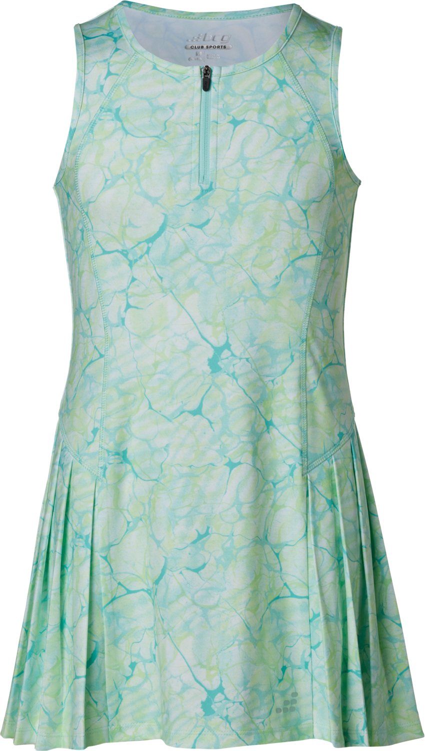 Hit the courts rocking the BCG Girls' Tennis Pleated 1/4-Zip Dress. The pleated skirt highlights an eye-catching appearance, and the 1/4-zip closure makes it easy to take on and off the dress. A printed design adds a cute touch, and the 82% polyester and 18% spandex interlock construction withstands wear and tear while feeling soft.