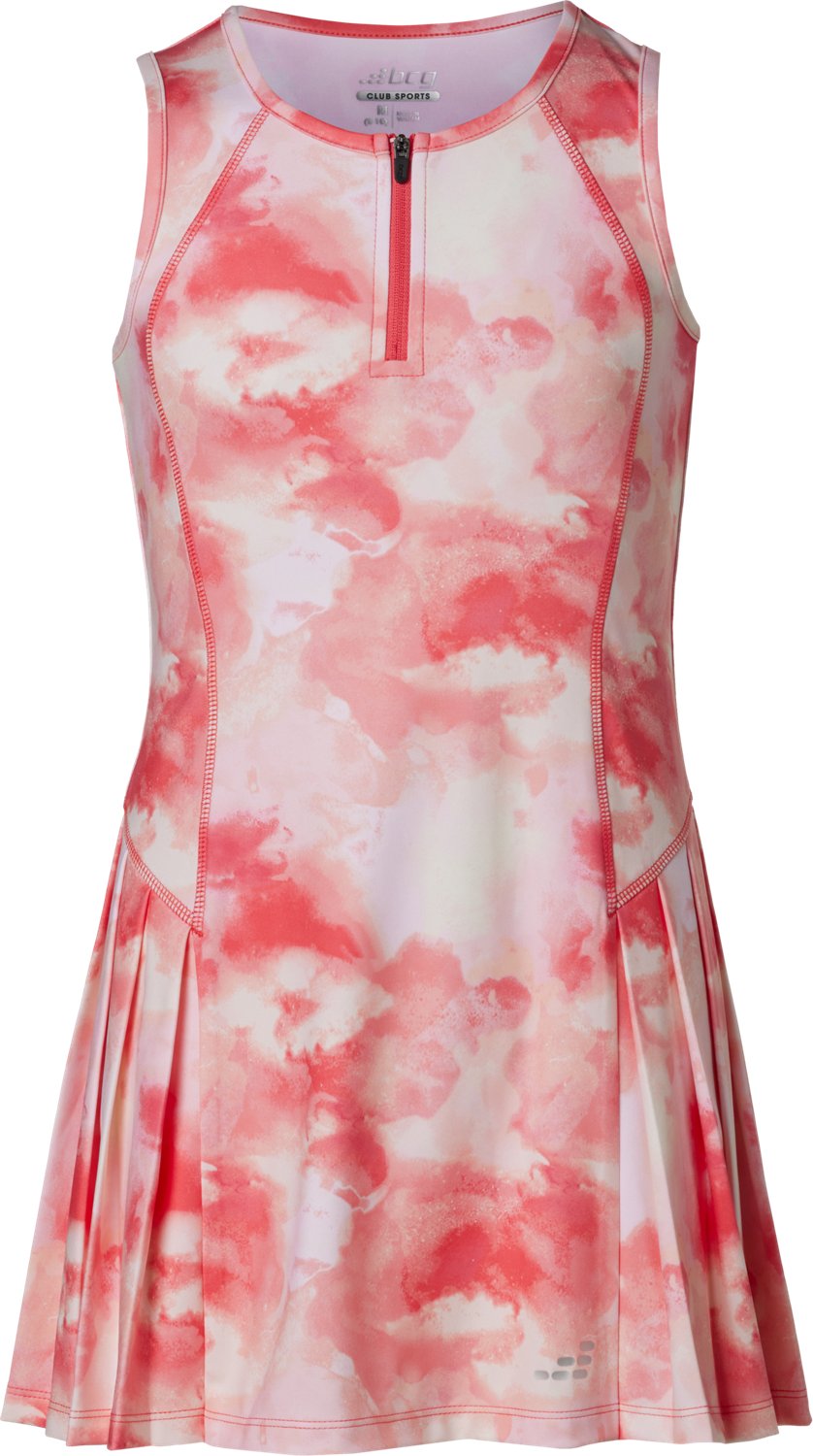 Hit the courts rocking the BCG Girls' Tennis Pleated 1/4-Zip Dress. The pleated skirt highlights an eye-catching appearance, and the 1/4-zip closure makes it easy to take on and off the dress. A printed design adds a cute touch, and the 82% polyester and 18% spandex interlock construction withstands wear and tear while feeling soft.