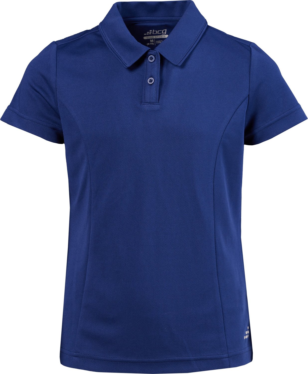 She can head to the court wearing the BCG Girls' Tennis Polo Shirt. This polo is made from 100% polyester textured knit fabric for durability. The moisture wicking technology helps keep her dry, while the UPF protectant guards against harmful sun rays.